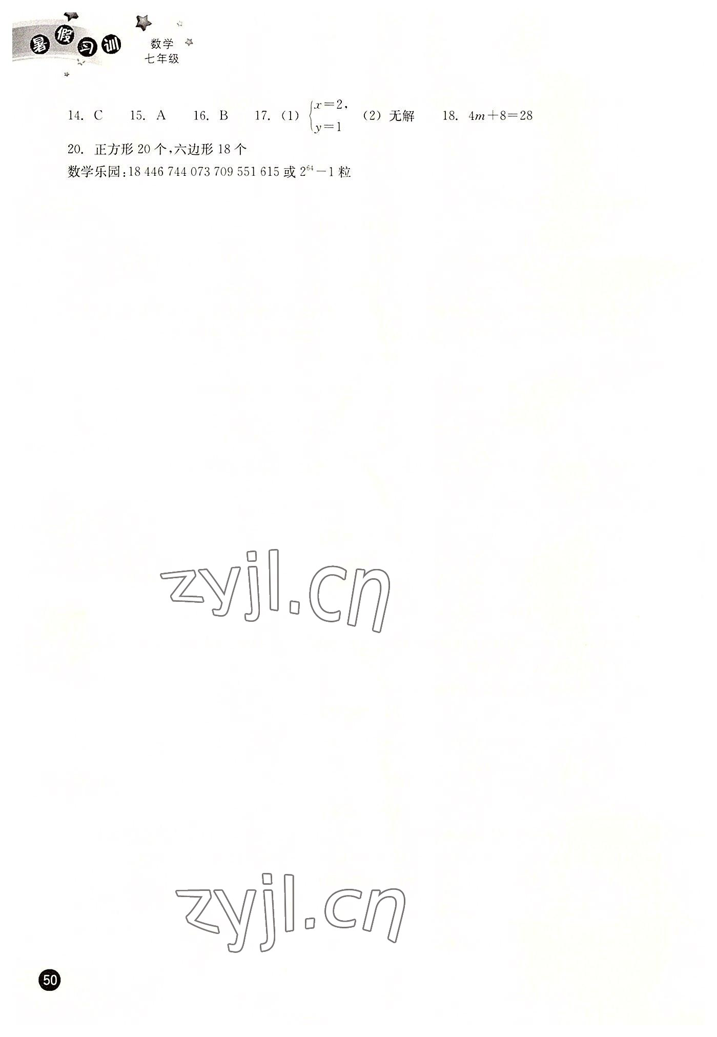 注:目前有些书本章节名称可能整理的还不是很完善,但都是按照顺序排列的,请同学们按照顺序仔细查找。练习册 2022年暑假习训七年级数学浙教版 答案主要是用来给同学们做完题方便对答案用的,请勿直接抄袭。