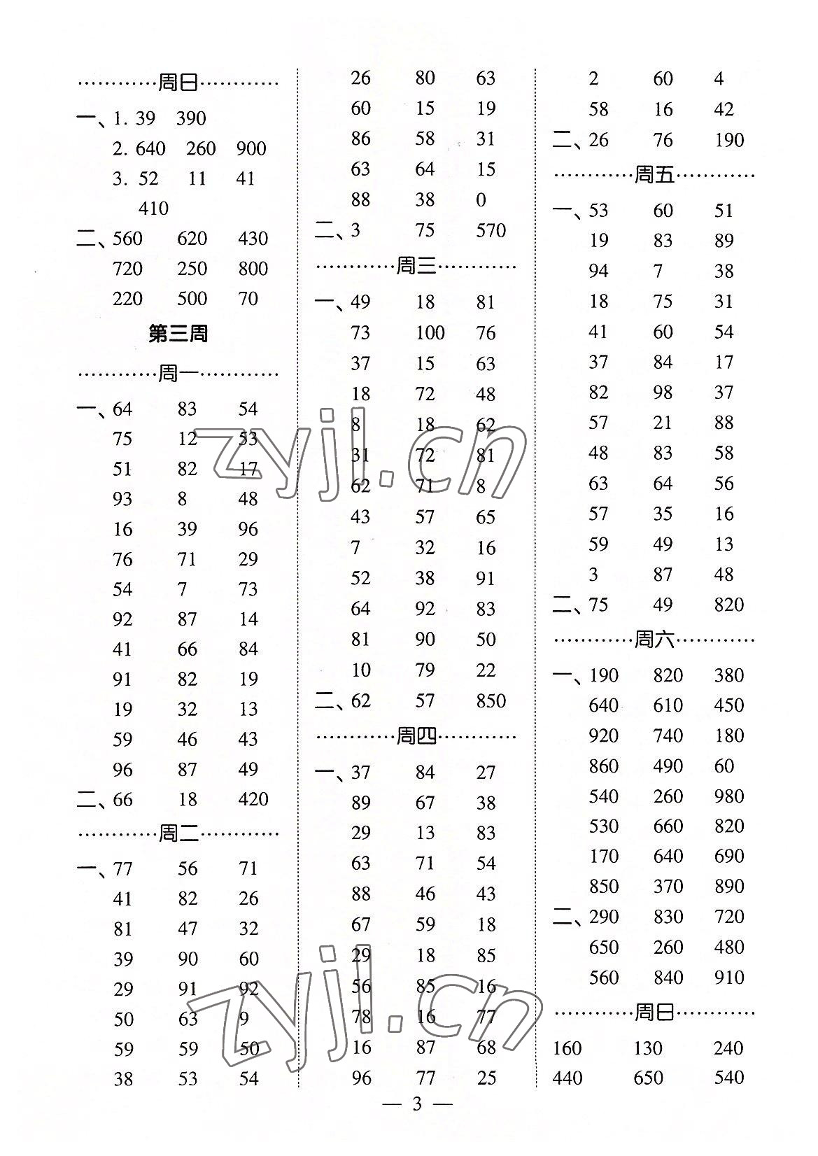 2022年经纶学典口算达人三年级数学上册人教版