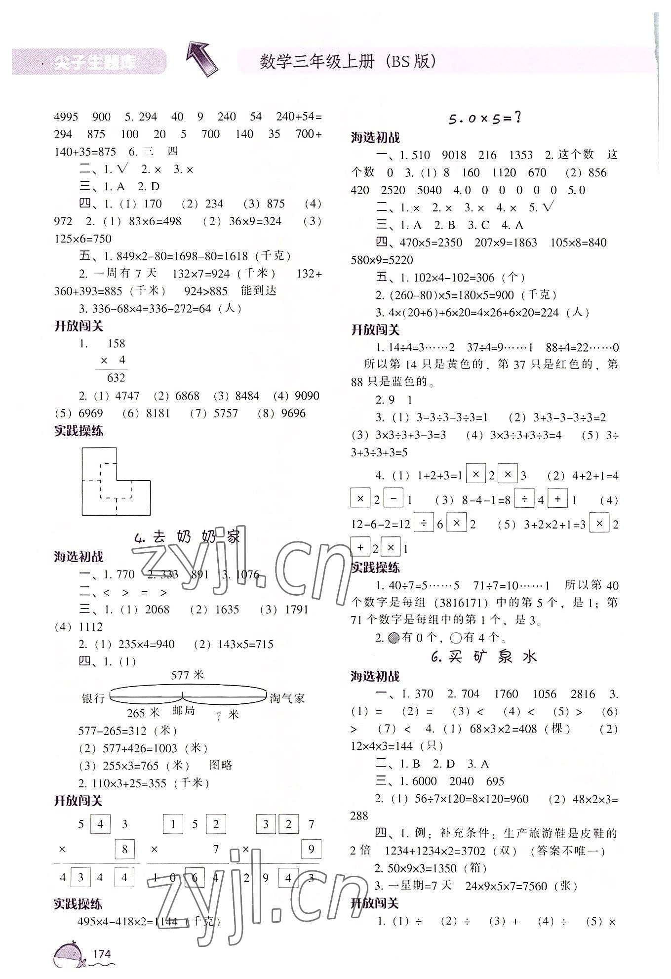 注:目前有些书本章节名称可能整理的还不是很完善,但都是按照顺序排列的,请同学们按照顺序仔细查找。练习册 2022年尖子生题库三年级数学上册北师大版 答案主要是用来给同学们做完题方便对答案用的,请勿直接抄袭。