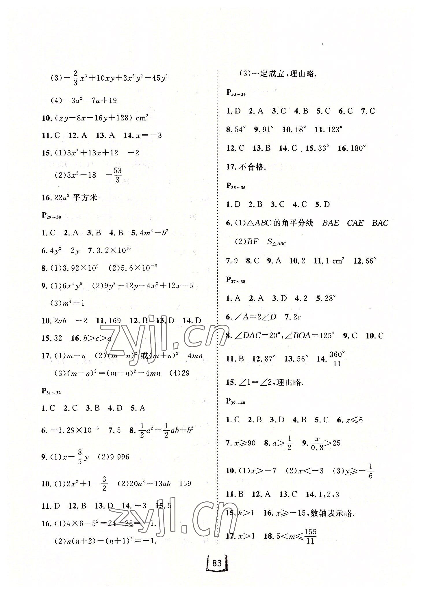 注:目前有些书本章节名称可能整理的还不是很完善,但都是按照顺序排列的,请同学们按照顺序仔细查找。练习册 桂壮红皮书署假天地七年级数学冀教版河北少年儿童出版社 答案主要是用来给同学们做完题方便对答案用的,请勿直接抄袭。