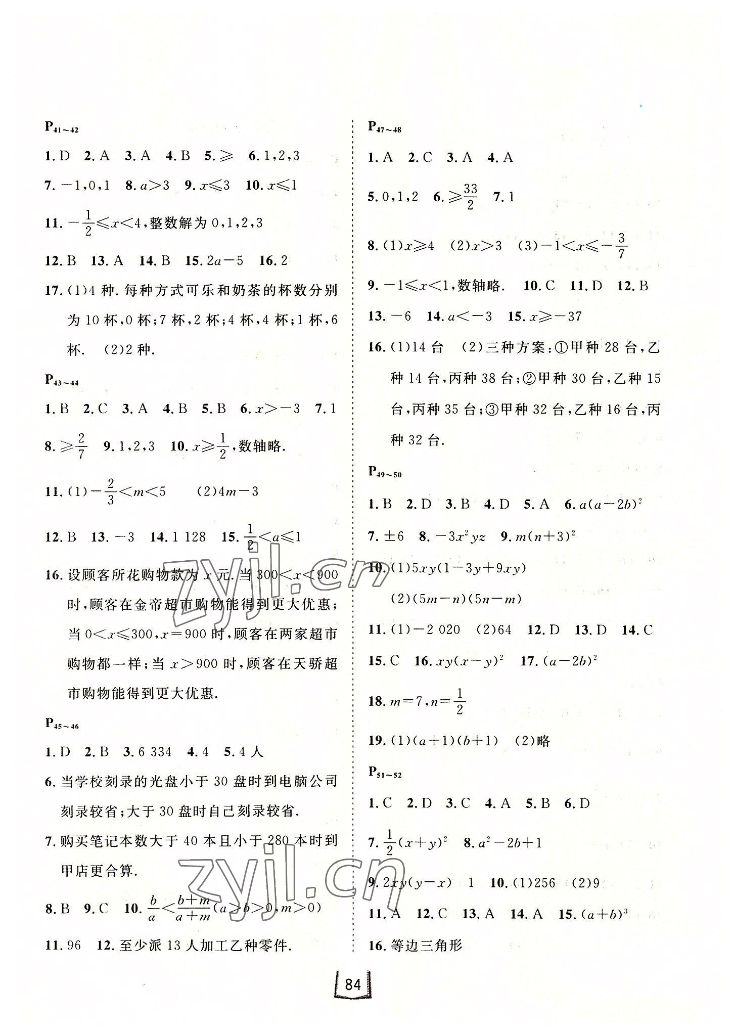 注:目前有些书本章节名称可能整理的还不是很完善,但都是按照顺序排列的,请同学们按照顺序仔细查找。练习册 桂壮红皮书署假天地七年级数学冀教版河北少年儿童出版社 答案主要是用来给同学们做完题方便对答案用的,请勿直接抄袭。
