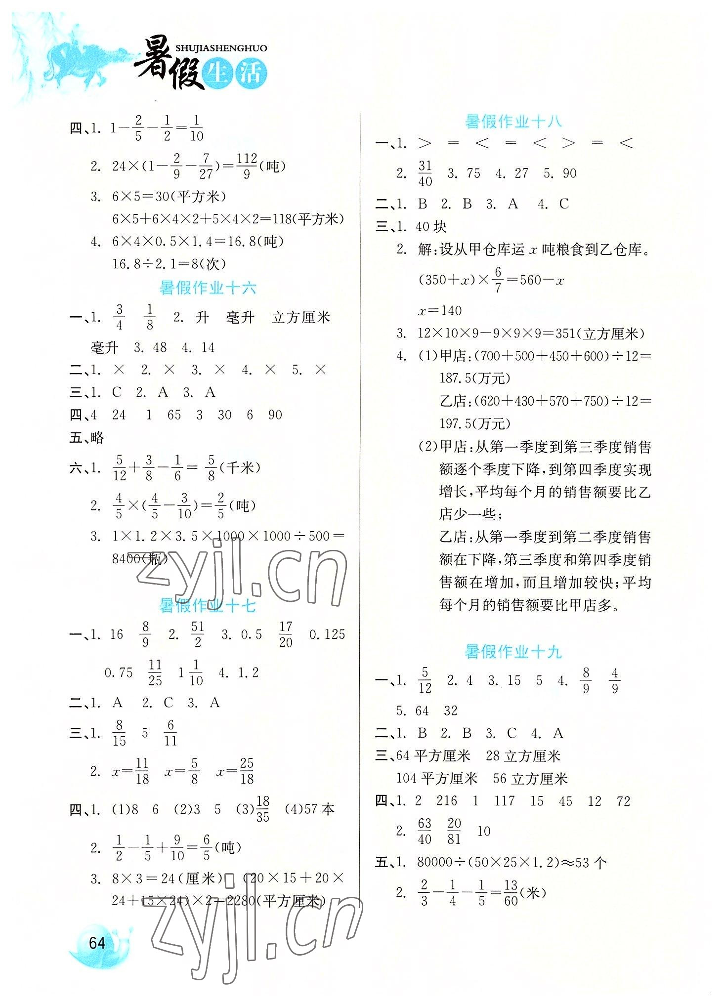 注:目前有些书本章节名称可能整理的还不是很完善,但都是按照顺序排列的,请同学们按照顺序仔细查找。练习册 2022年暑假生活五年级数学冀教版河北美术出版社 答案主要是用来给同学们做完题方便对答案用的,请勿直接抄袭。