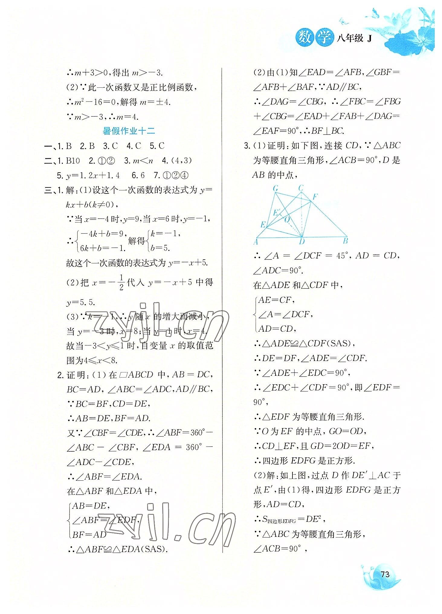 2022年暑假生活八年级数学冀教版河北美术出版社