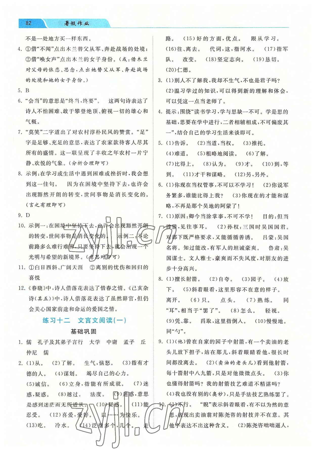 注:目前有些书本章节名称可能整理的还不是很完善,但都是按照顺序排列的,请同学们按照顺序仔细查找。练习册 2022年暑假作业七年级语文人教版河北美术出版社 答案主要是用来给同学们做完题方便对答案用的,请勿直接抄袭。