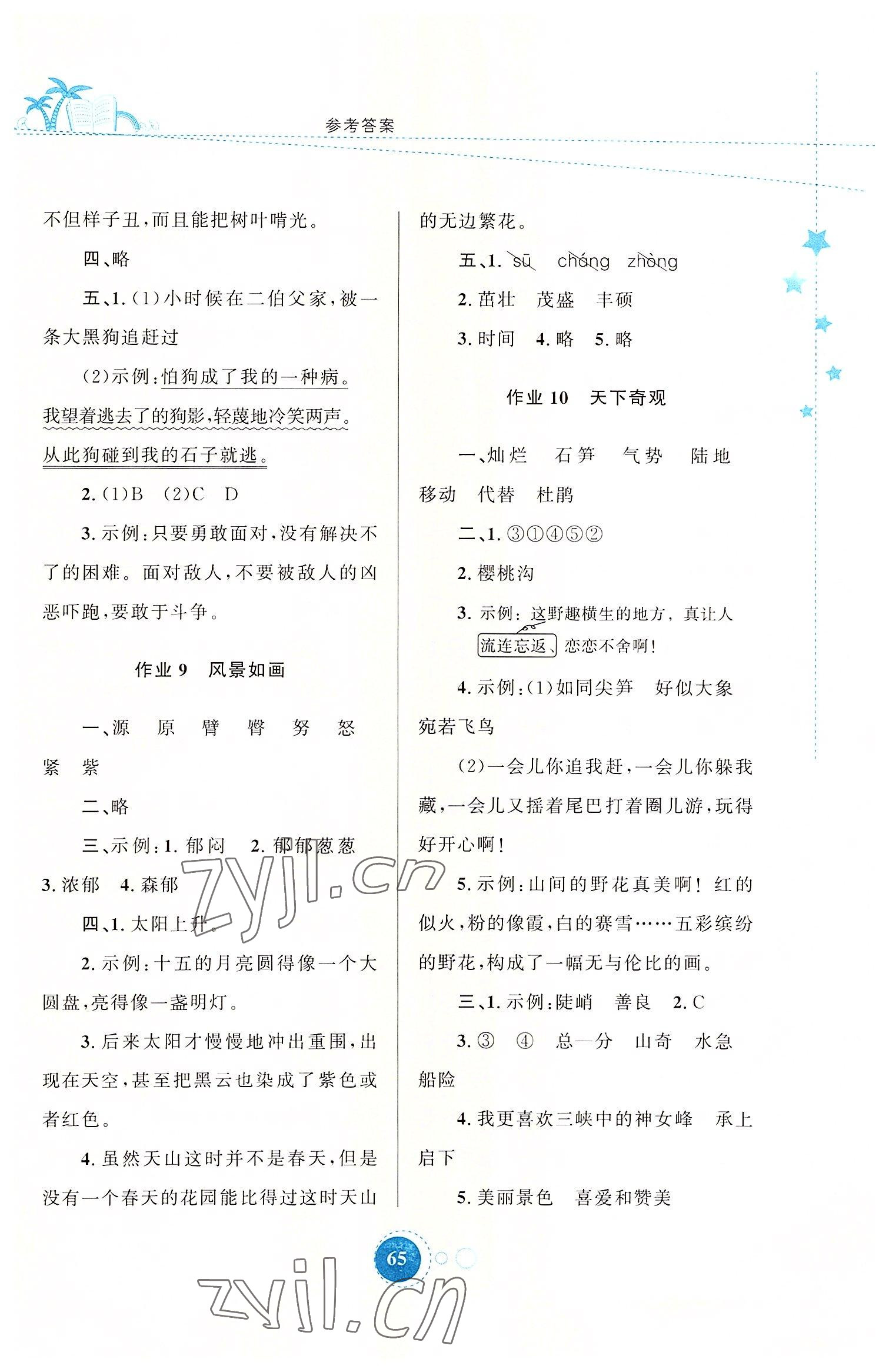 2022年暑假作业四年级语文人教版陕西旅游出版社