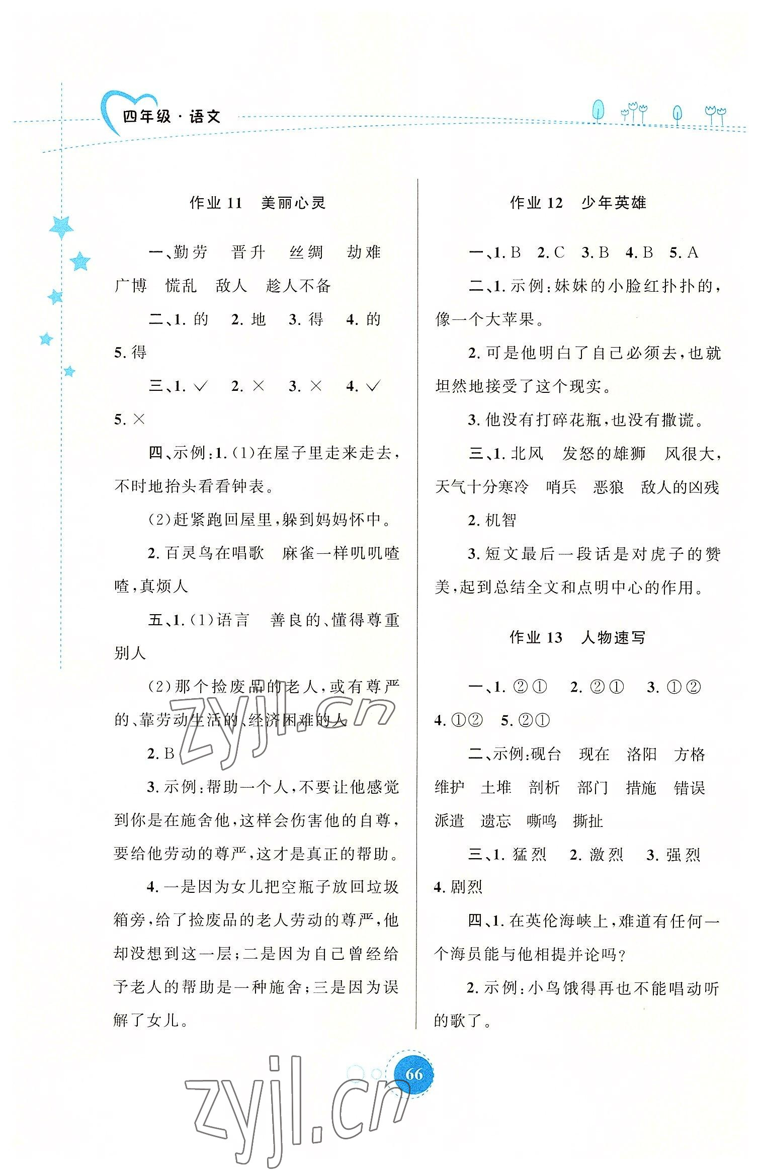 2022年暑假作业四年级语文人教版陕西旅游出版社