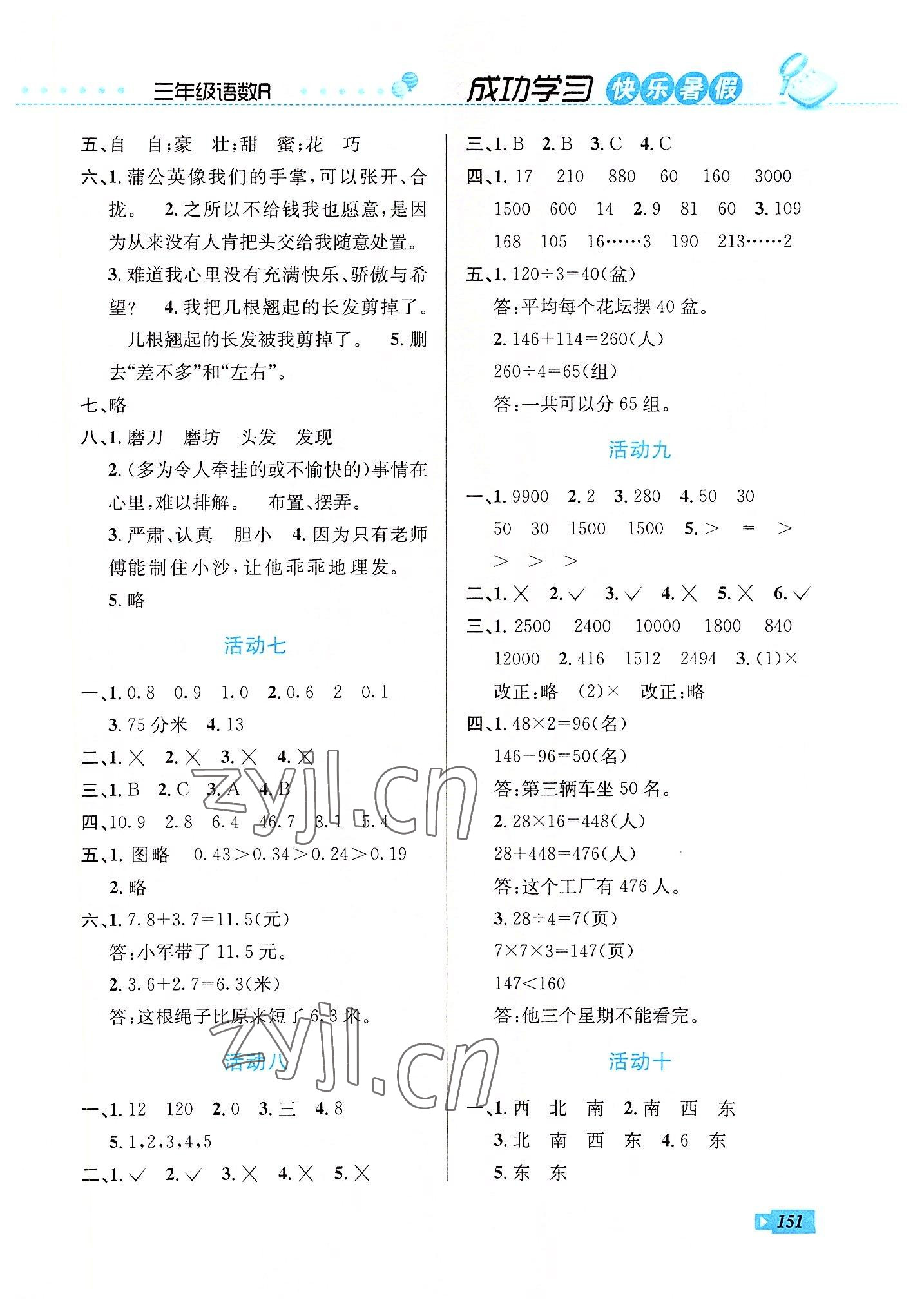 注:目前有些书本章节名称可能整理的还不是很完善,但都是按照顺序排列的,请同学们按照顺序仔细查找。练习册 2022年创新成功学习快乐暑假三年级语文数学英语云南科技出版社 答案主要是用来给同学们做完题方便对答案用的,请勿直接抄袭。