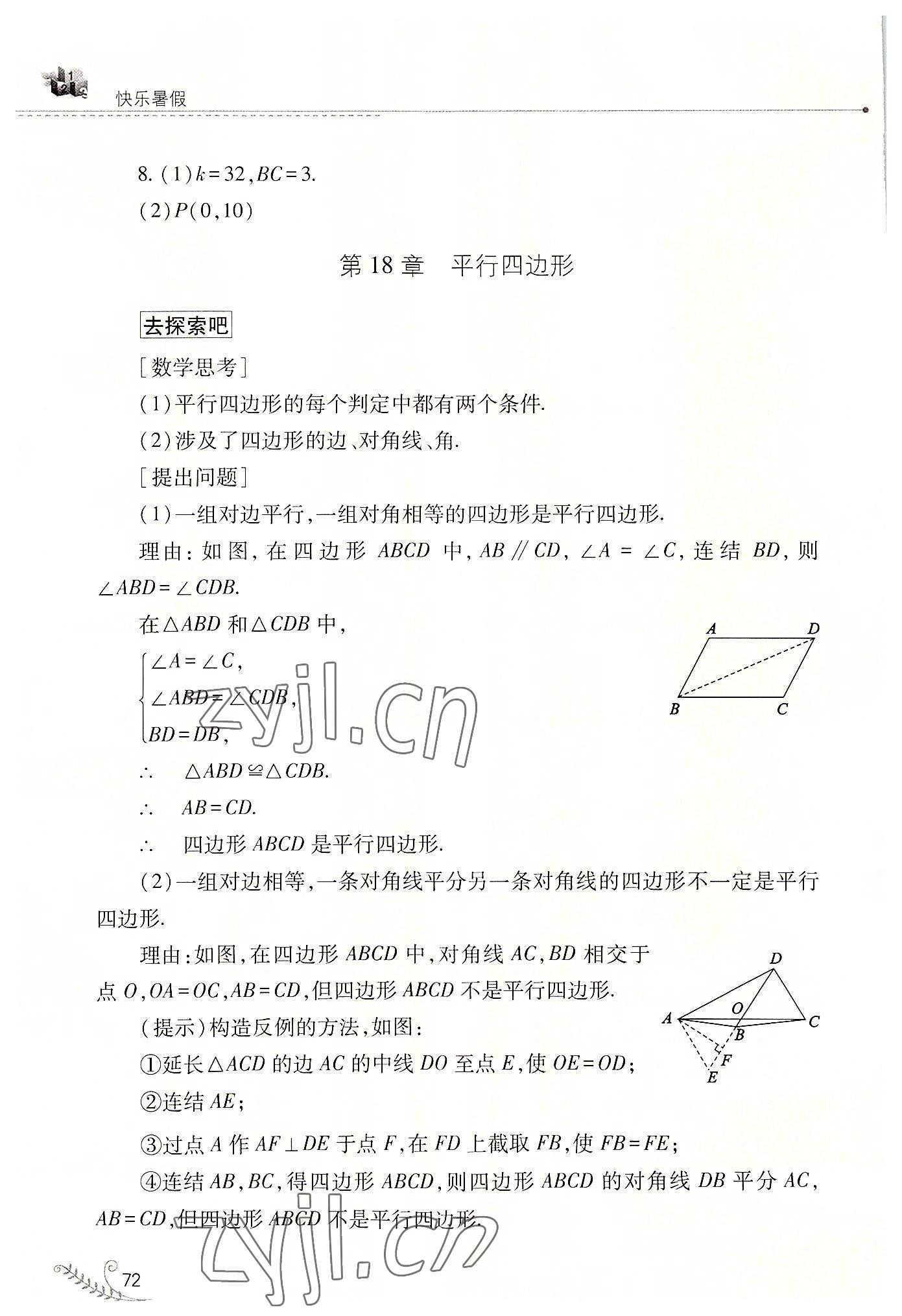 《2022年快乐暑假八年级数学华师大版山西教育出版社》