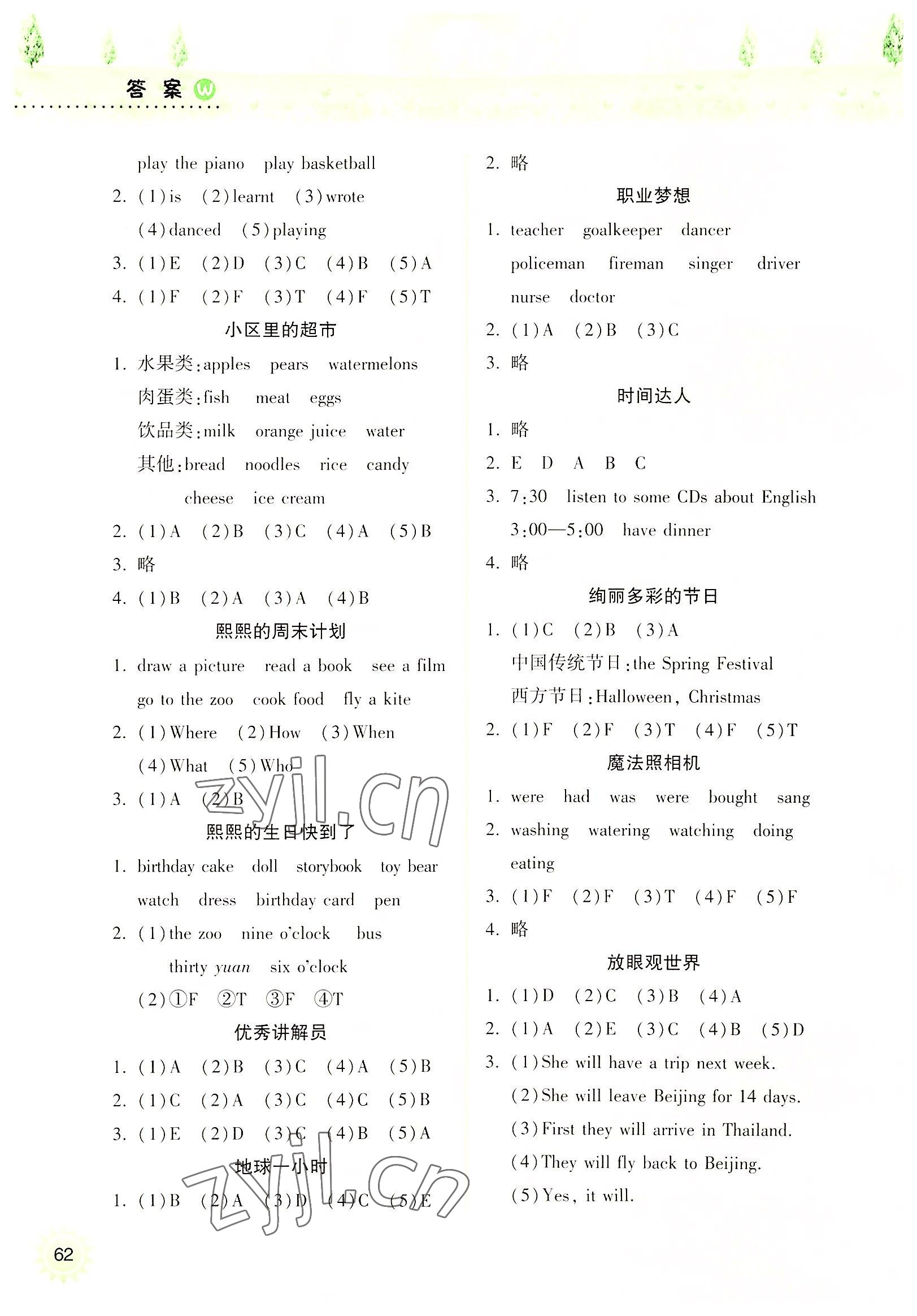 注:目前有些书本章节名称可能整理的还不是很完善,但都是按照顺序排列的,请同学们按照顺序仔细查找。练习册 2022年暑假作业本小学五年级英语外研版希望出版社 答案主要是用来给同学们做完题方便对答案用的,请勿直接抄袭。