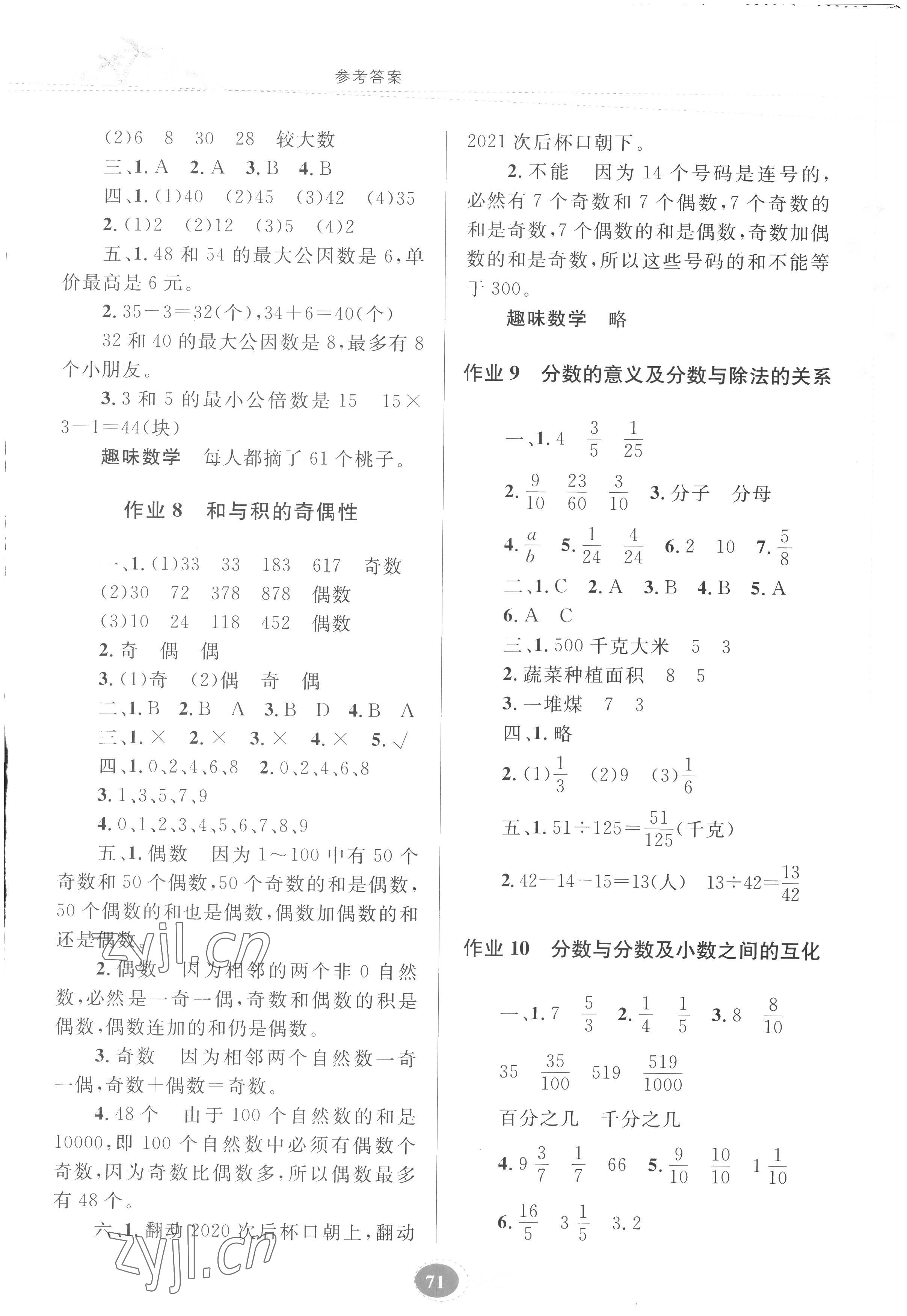 2022年暑假作业五年级数学苏教版贵州人民出版社