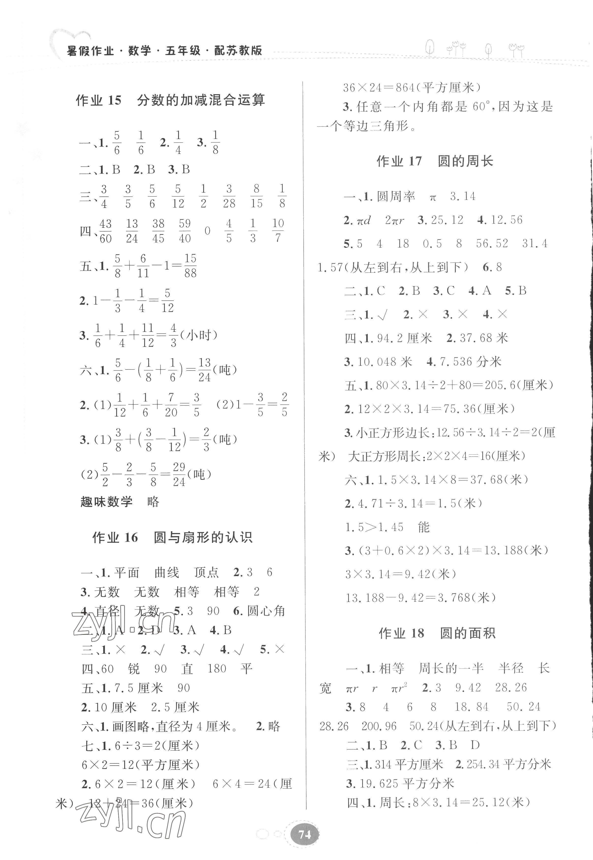2022年暑假作业五年级数学苏教版贵州人民出版社