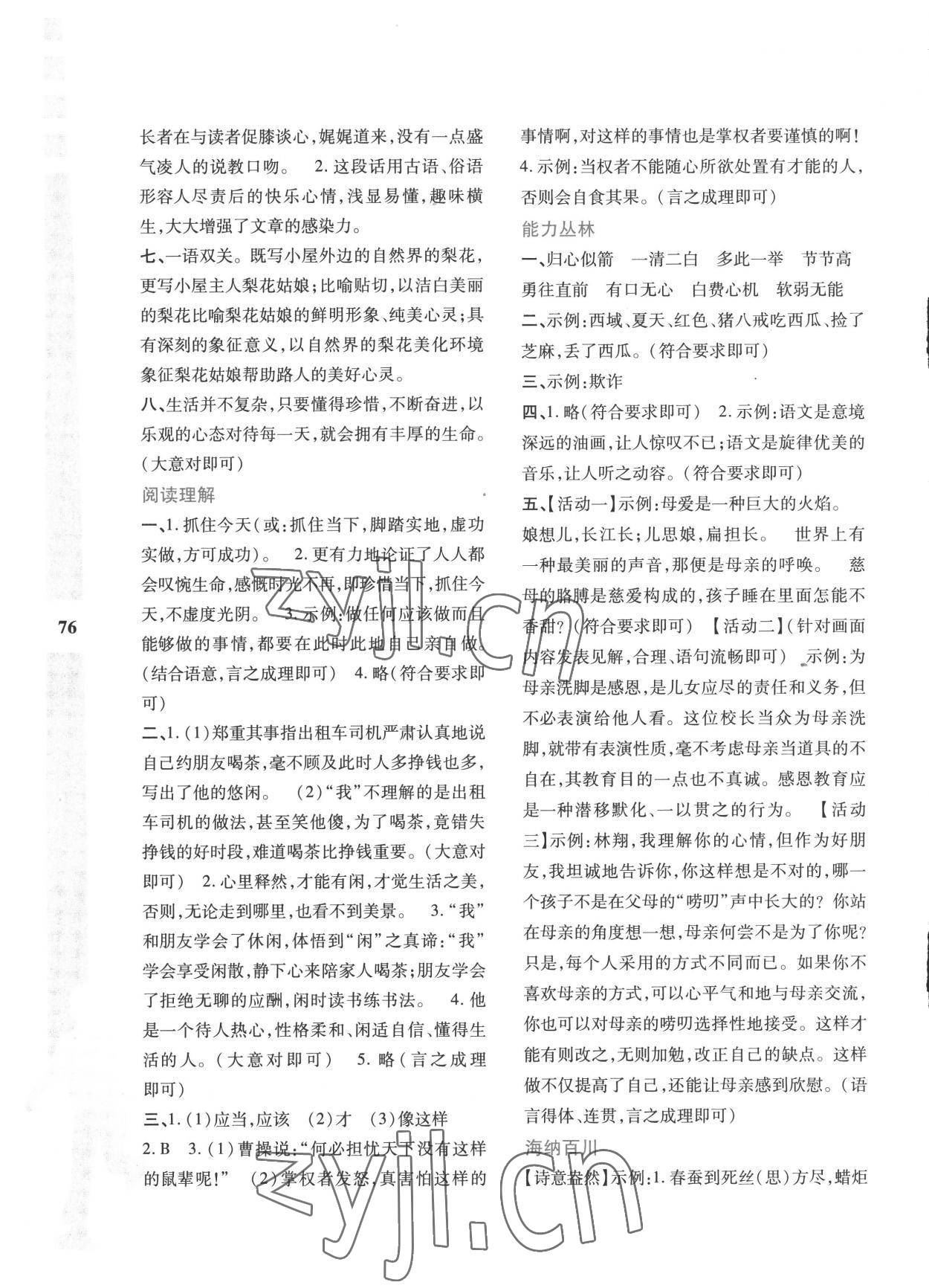 2022年暑假作业与生活七年级语文人教版陕西人民教育出版社