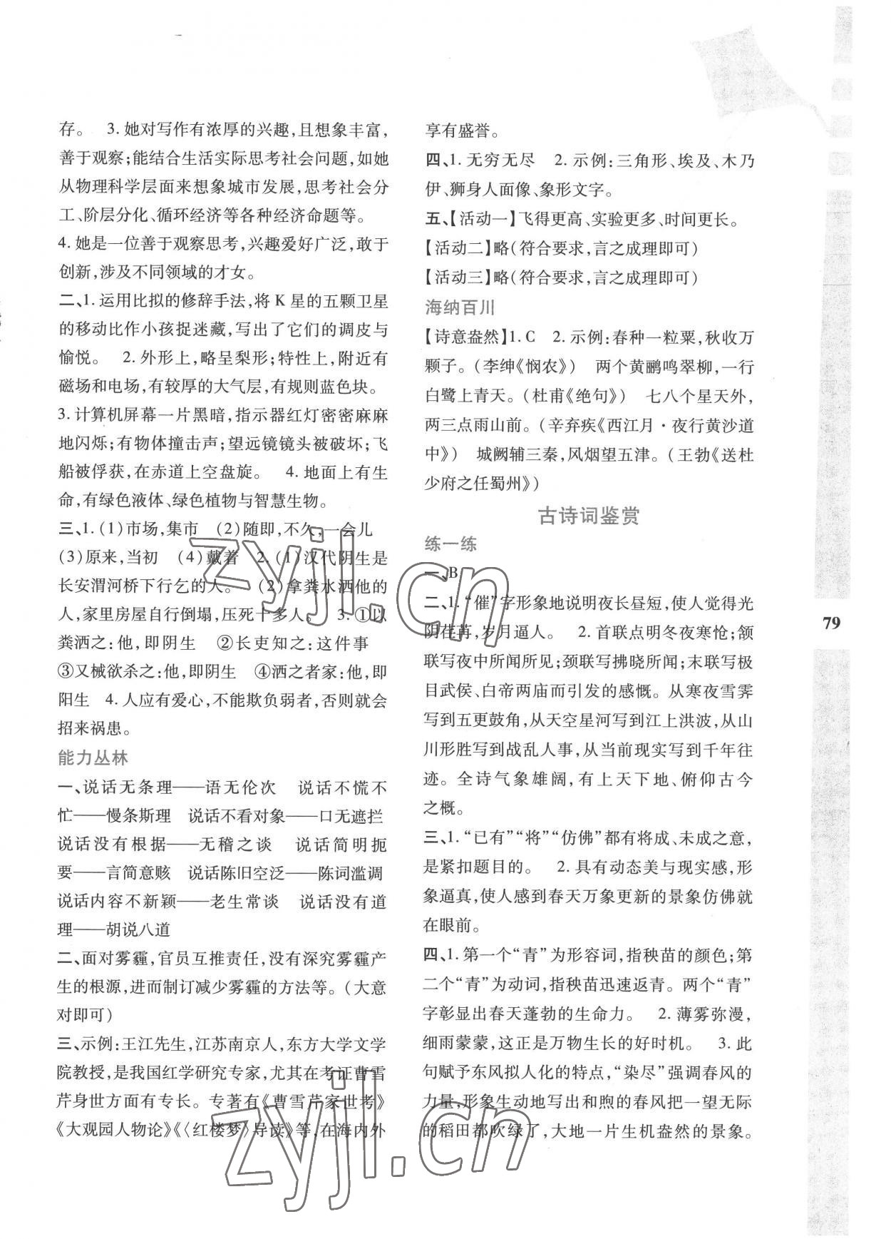 注:目前有些书本章节名称可能整理的还不是很完善,但都是按照顺序排列的,请同学们按照顺序仔细查找。练习册 2022年暑假作业与生活七年级语文人教版陕西人民教育出版社 答案主要是用来给同学们做完题方便对答案用的,请勿直接抄袭。