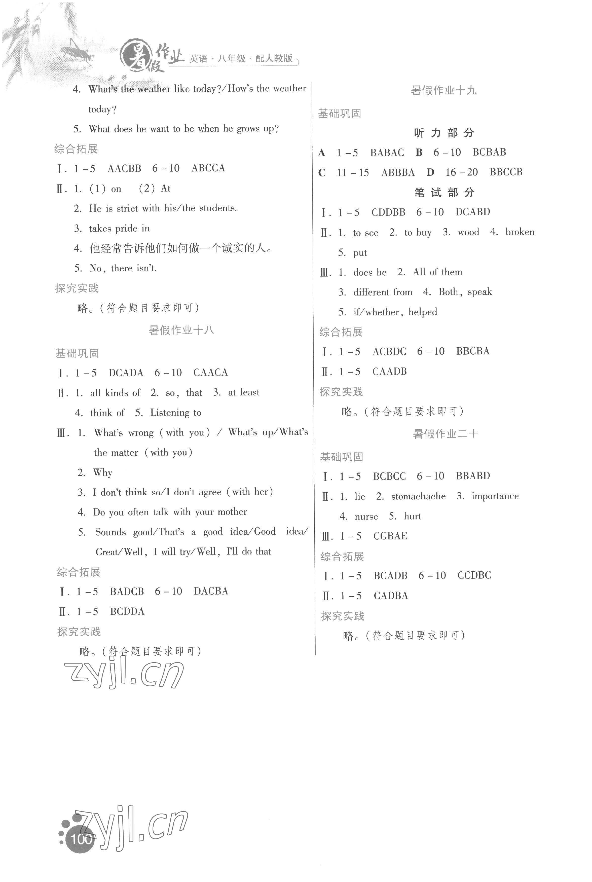 2022年暑假作业八年级英语人教版贵州人民出版社