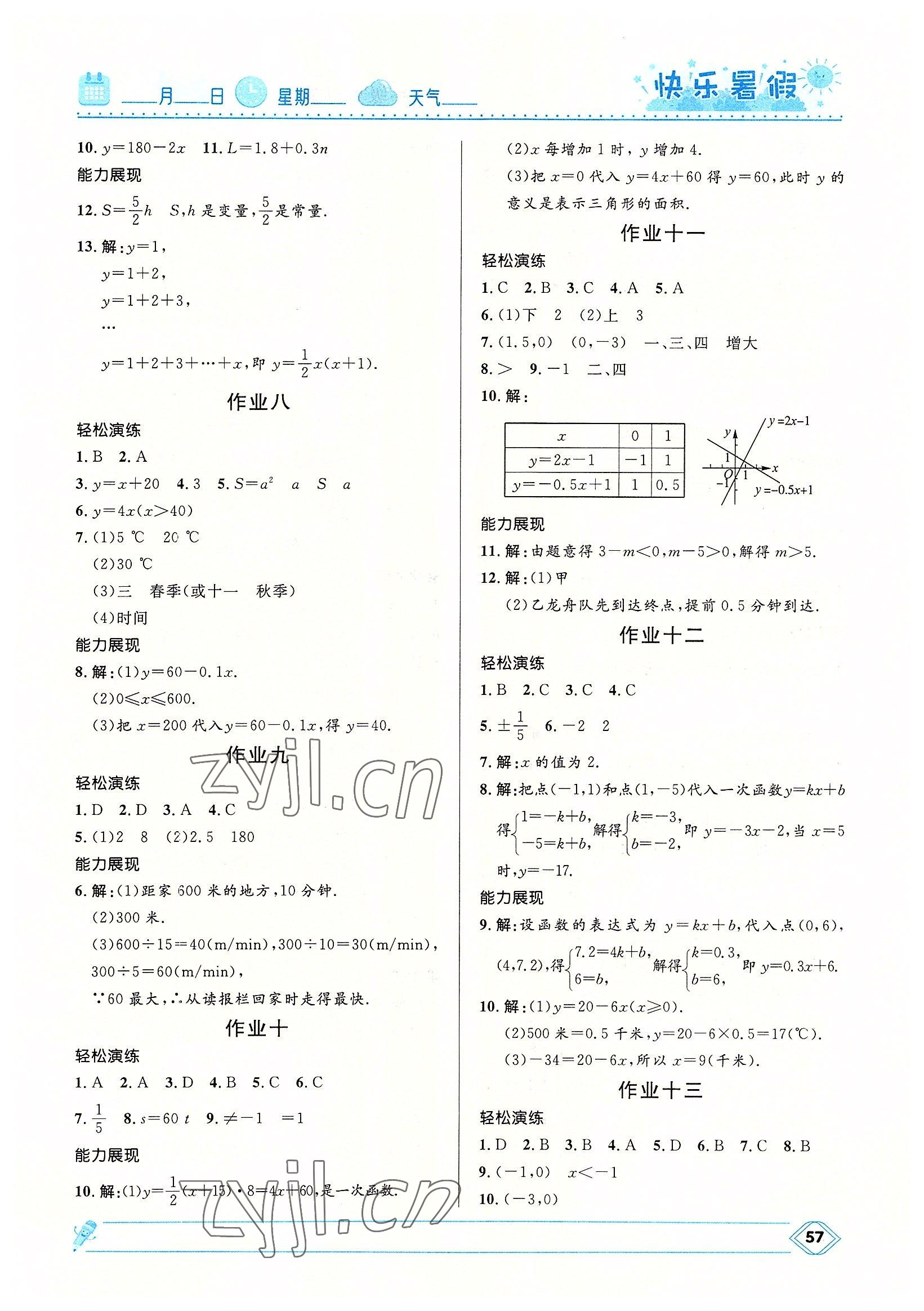 《2022年赢在起跑线中学生快乐暑假八年级数学冀教版河北少年儿童出版社》