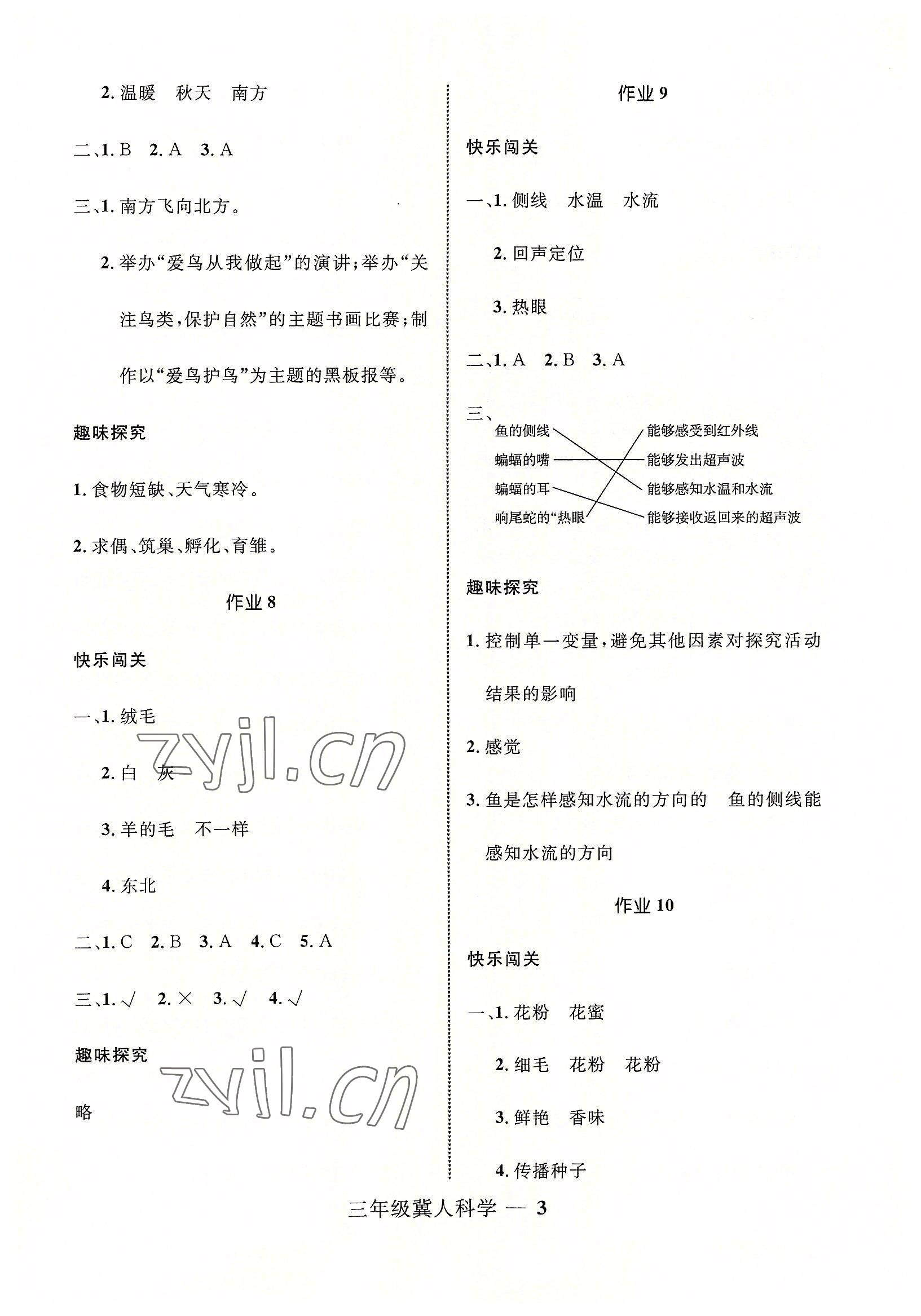 2022年赢在起跑线快乐暑假三年级科学冀人版河北少年儿童出版社