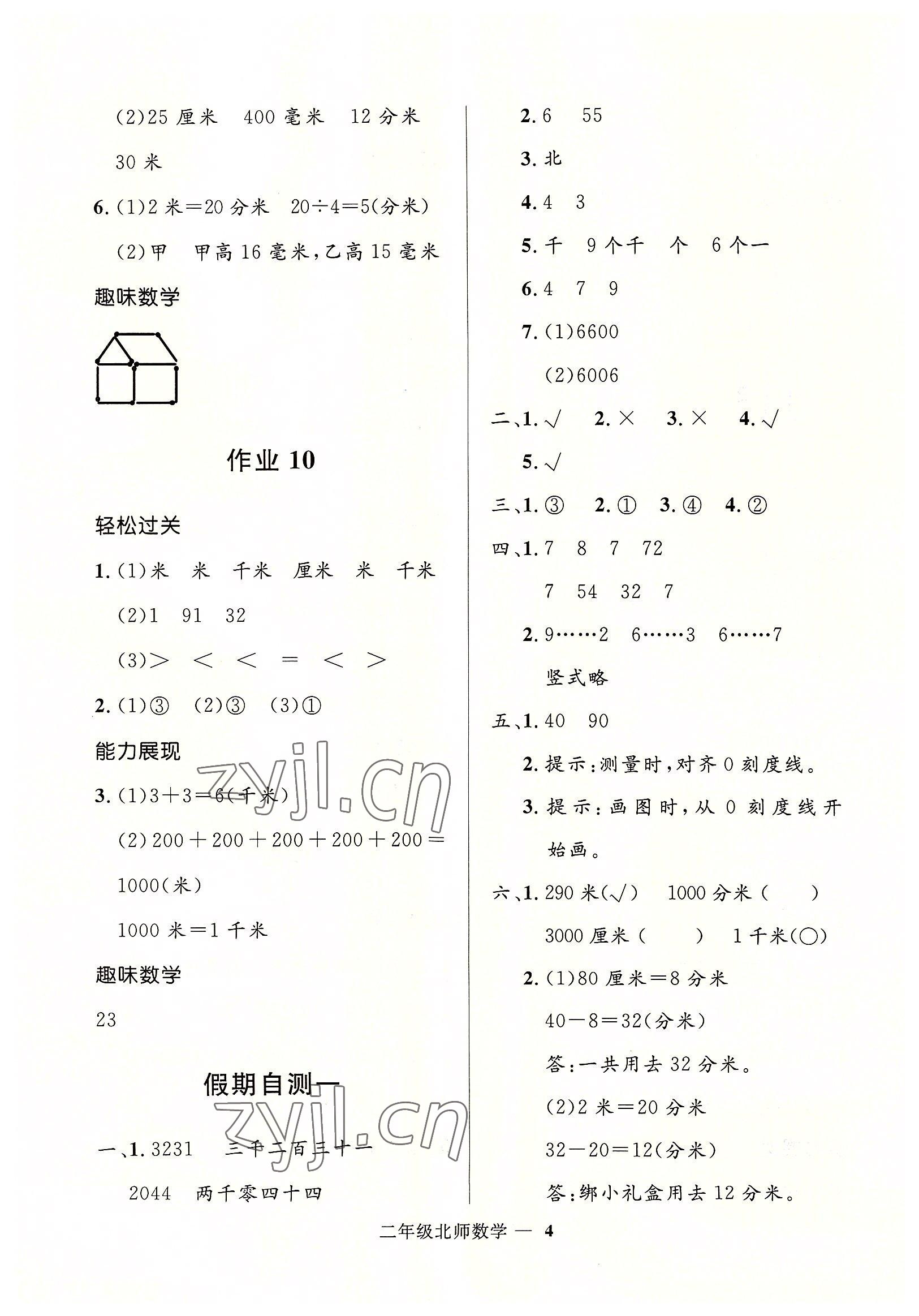 注:目前有些书本章节名称可能整理的还不是很完善,但都是按照顺序排列的,请同学们按照顺序仔细查找。练习册 2022年赢在起跑线快乐暑假二年级数学北师大版河北少年儿童出版社 答案主要是用来给同学们做完题方便对答案用的,请勿直接抄袭。