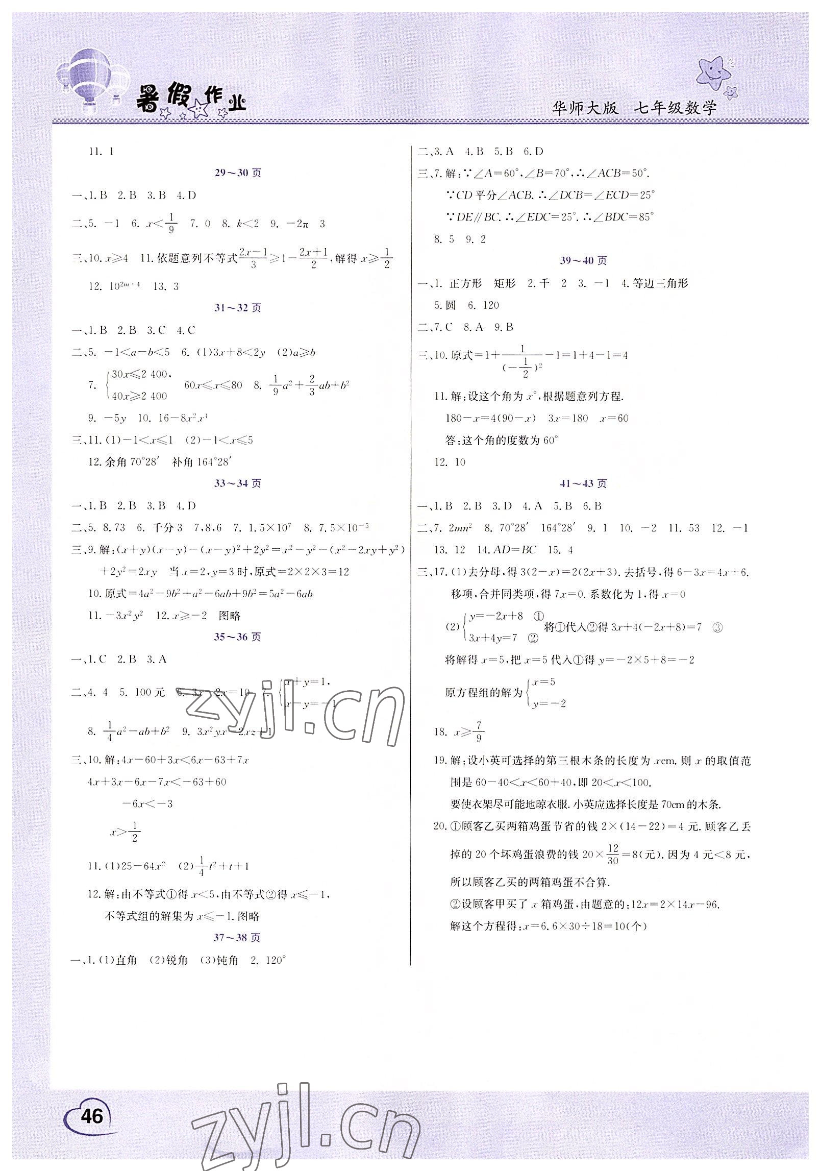 注:目前有些书本章节名称可能整理的还不是很完善,但都是按照顺序排列的,请同学们按照顺序仔细查找。练习册 2022年假期园地暑假作业七年级数学华师大版 答案主要是用来给同学们做完题方便对答案用的,请勿直接抄袭。