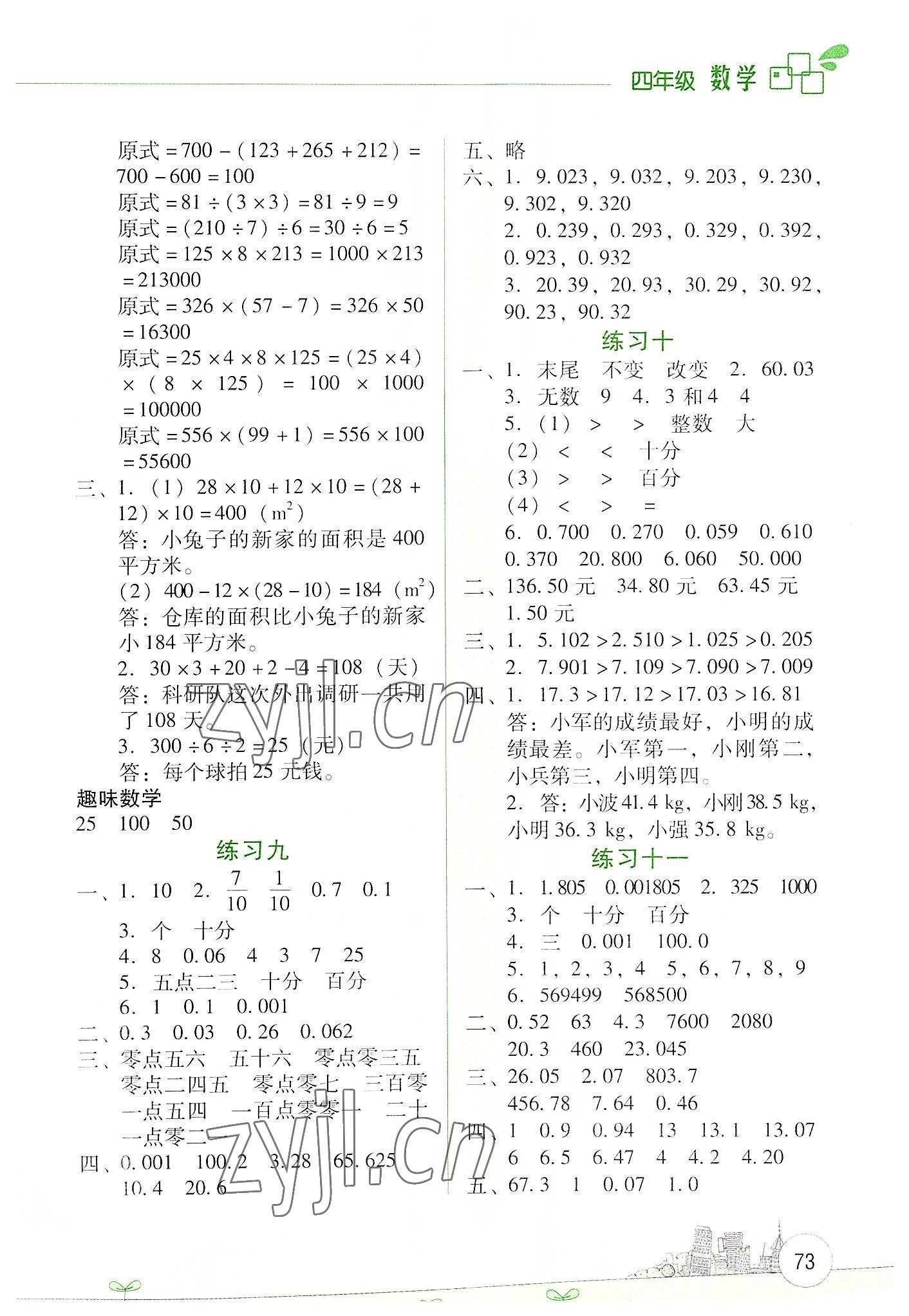 2022年暑假活动边学边玩云南大学出版社四年级数学