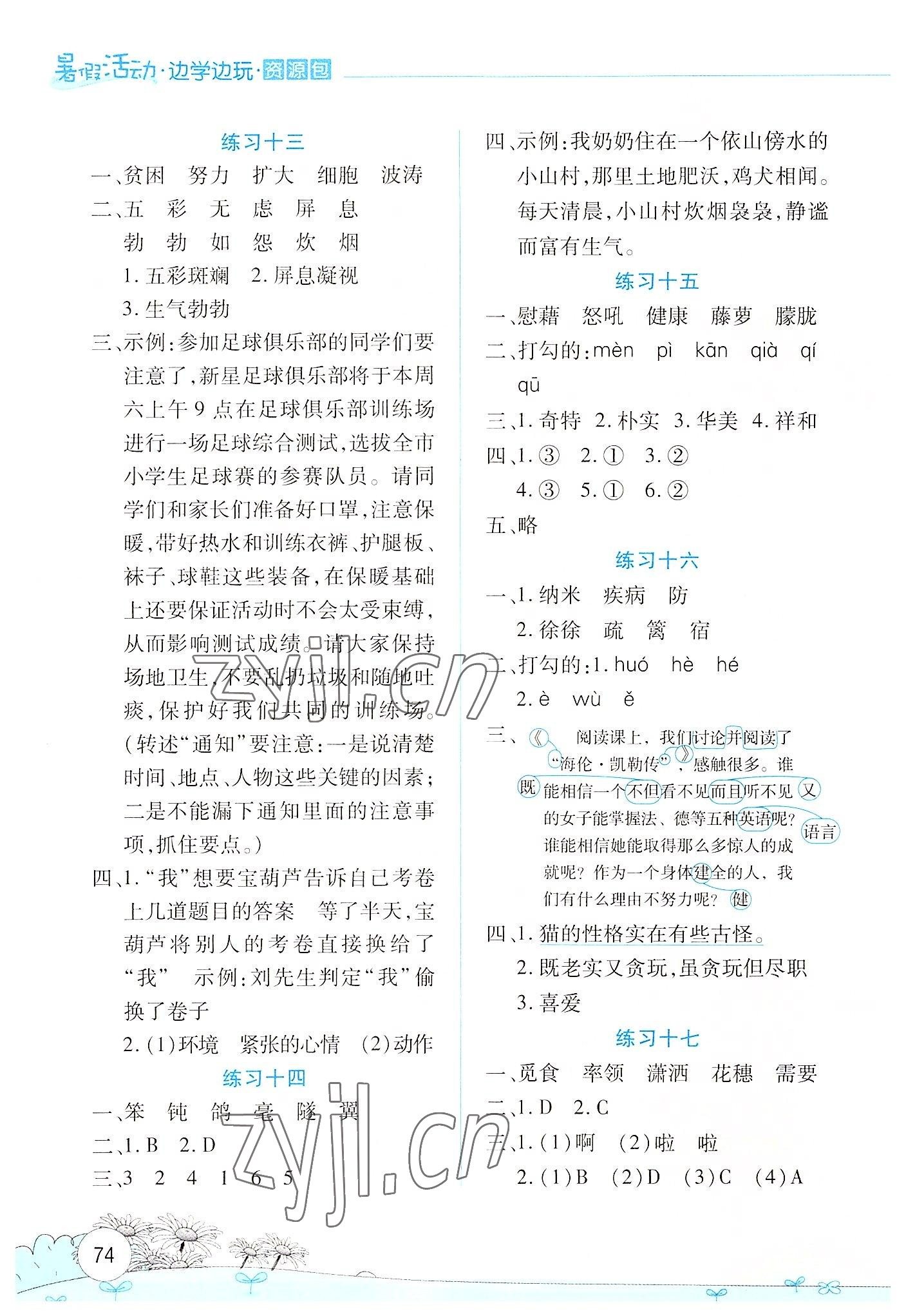 2022年暑假活动边学边玩四年级语文人教版云南大学出版社