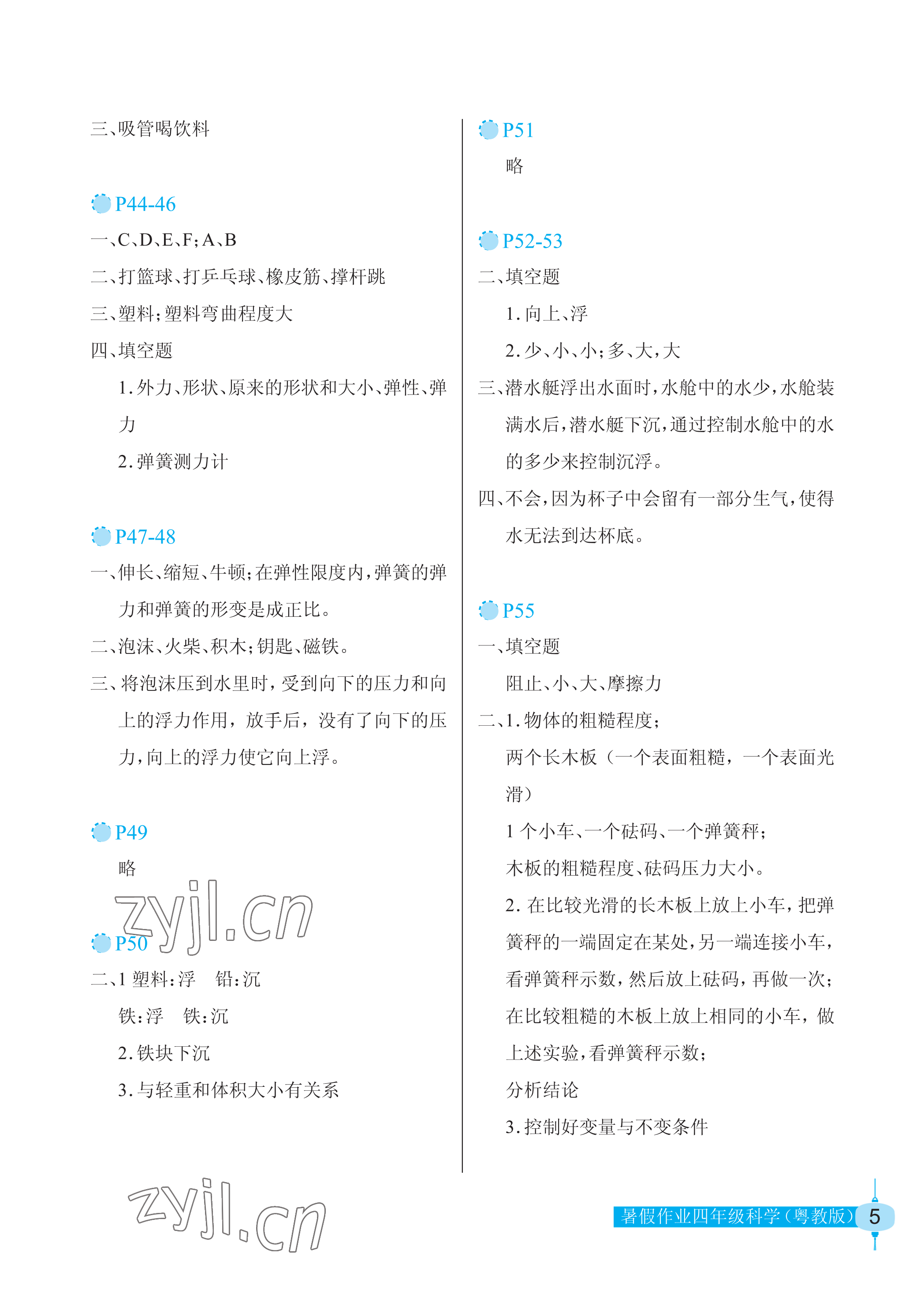 2022年暑假作业四年级科学粤教版长江少年儿童出版社