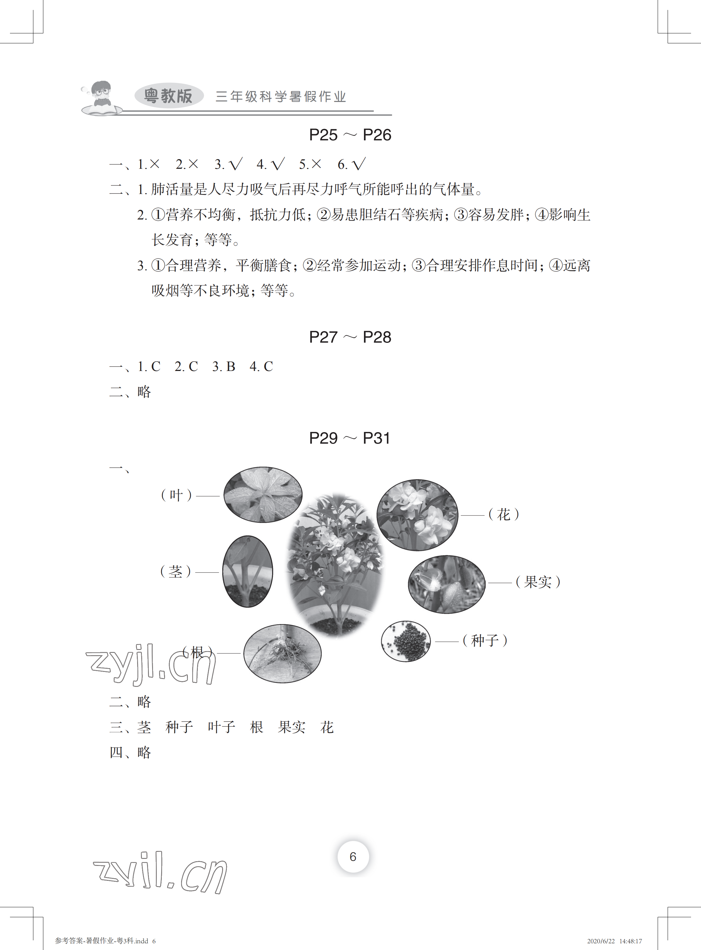 2022年暑假作业三年级科学粤教版长江少年儿童出版社