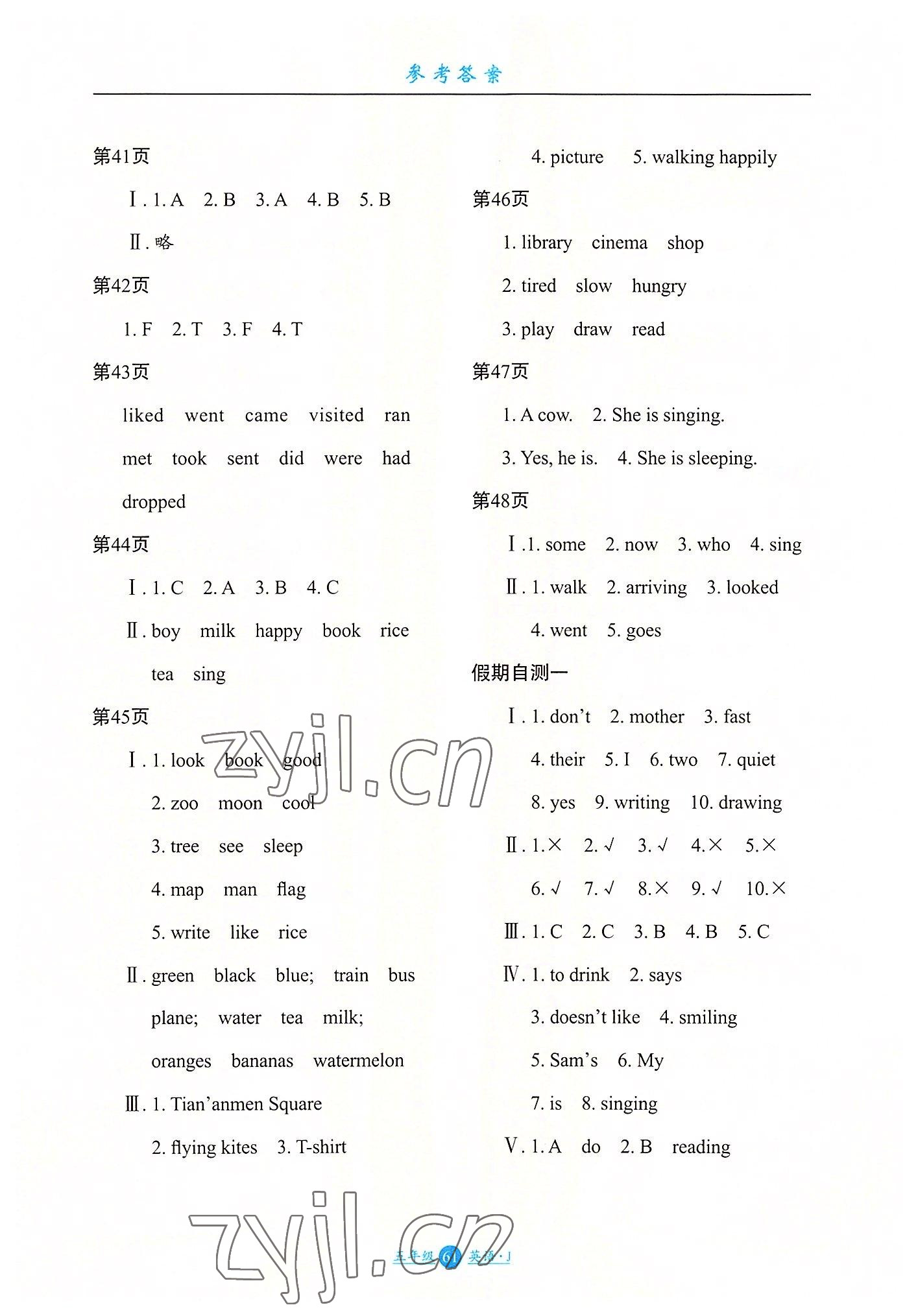 注:目前有些书本章节名称可能整理的还不是很完善,但都是按照顺序排列的,请同学们按照顺序仔细查找。练习册 2022年假期生活五年级英语冀教版方圆电子音像出版社 答案主要是用来给同学们做完题方便对答案用的,请勿直接抄袭。