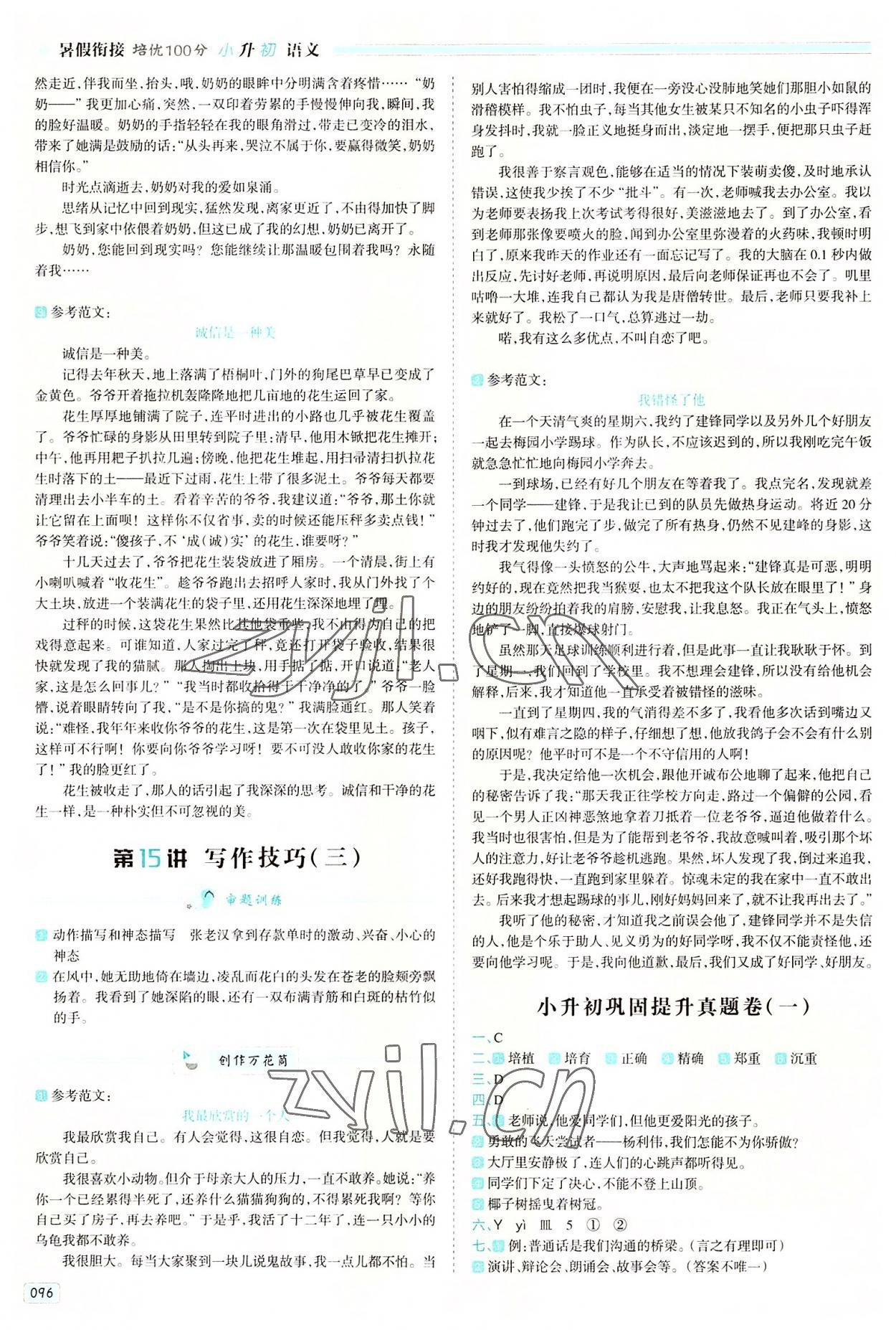 2022年暑假衔接培优100分南方日报出版社六年级语文全一册人教版