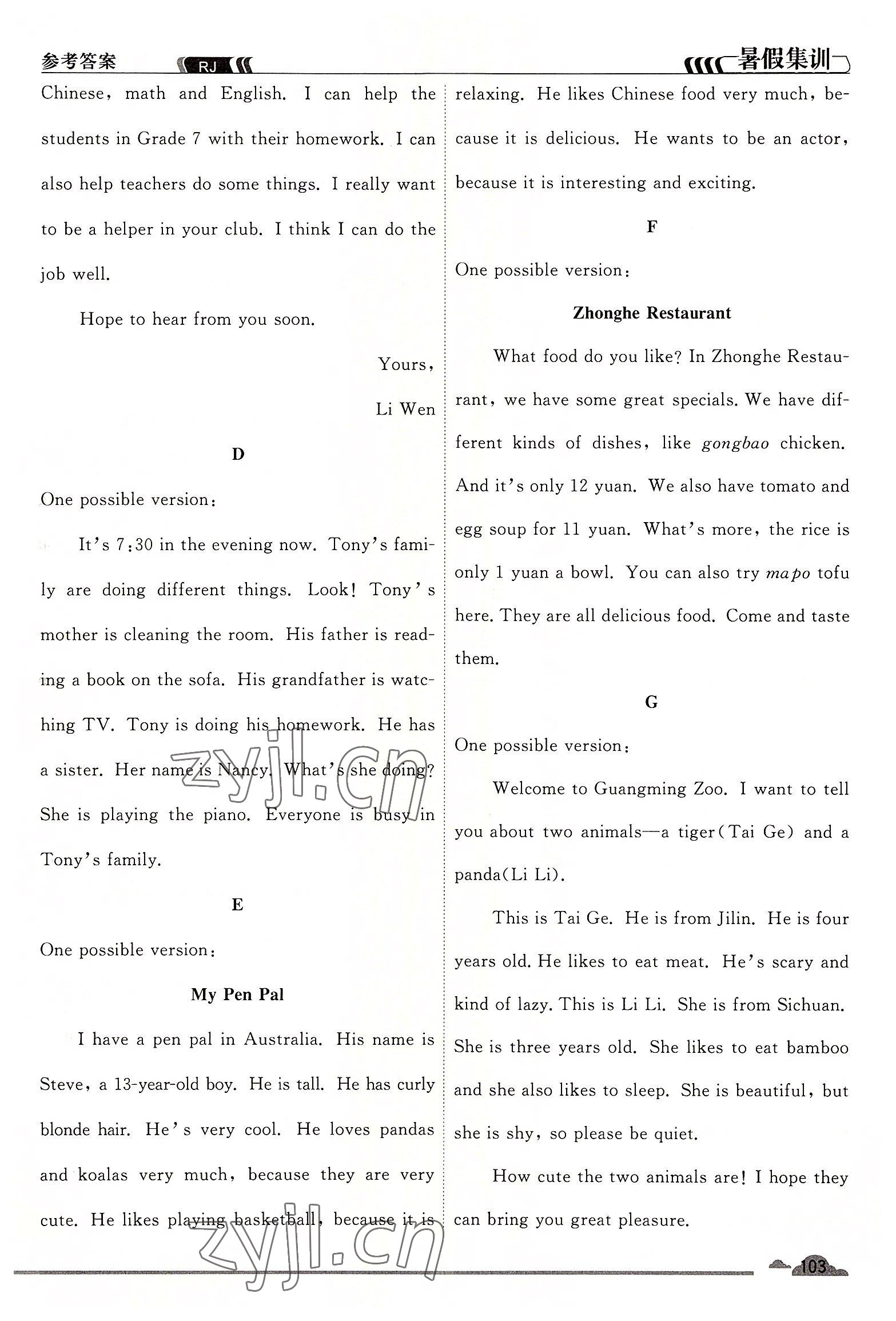 注:目前有些书本章节名称可能整理的还不是很完善,但都是按照顺序排列的,请同学们按照顺序仔细查找。练习册 2022年暑假集训七年级英语人教版合肥工业大学出版社 答案主要是用来给同学们做完题方便对答案用的,请勿直接抄袭。