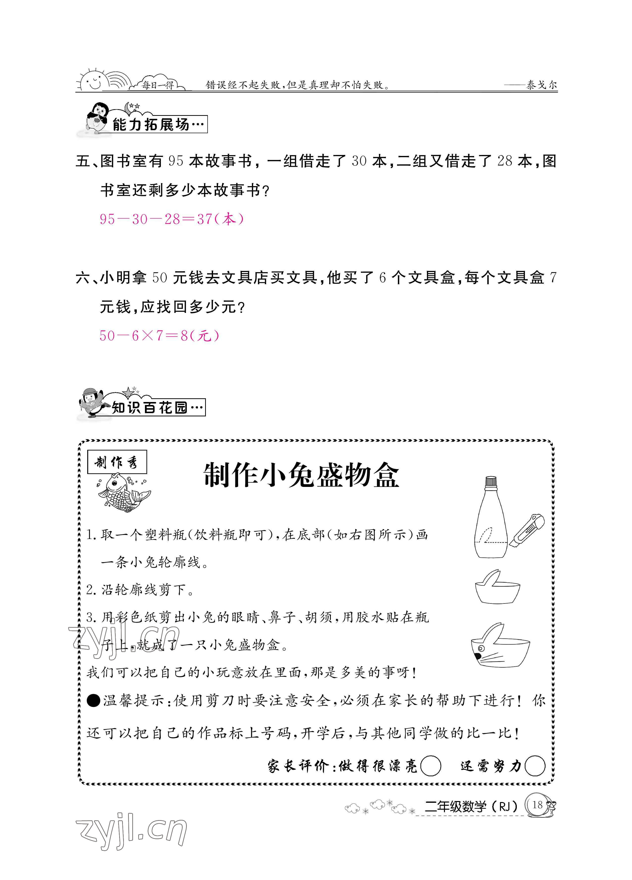 注:目前有些书本章节名称可能整理的还不是很完善,但都是按照顺序排列的,请同学们按照顺序仔细查找。练习册 2022年快乐假期暑假作业二年级数学人教版新疆专版 答案主要是用来给同学们做完题方便对答案用的,请勿直接抄袭。