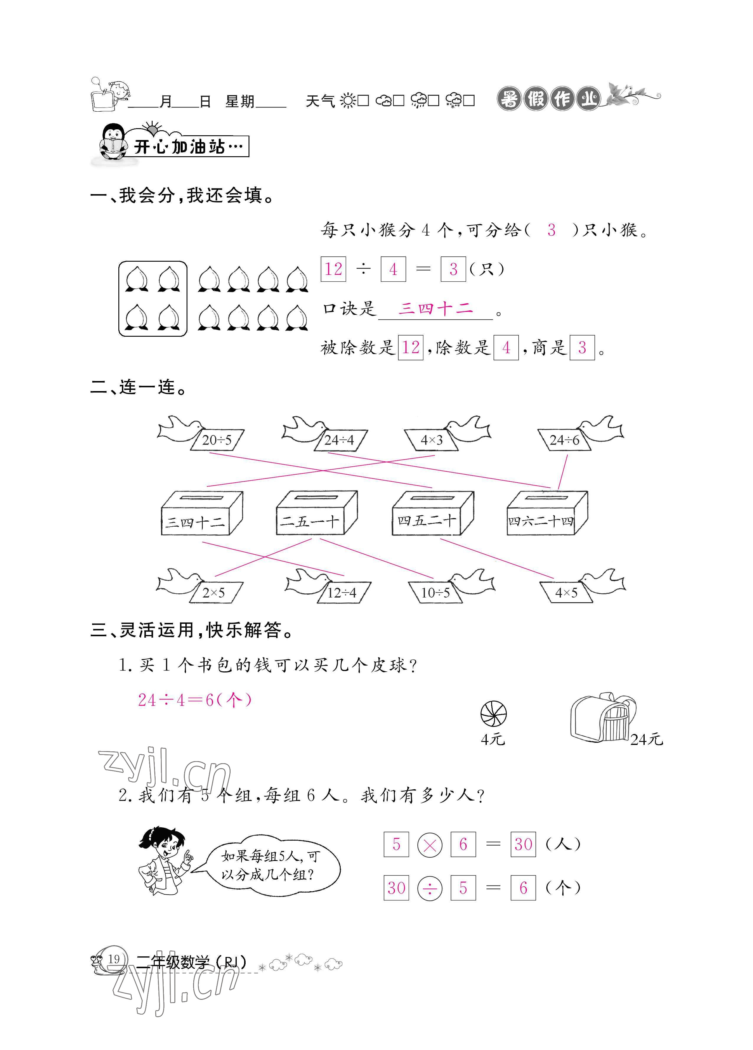 注:目前有些书本章节名称可能整理的还不是很完善,但都是按照顺序排列的,请同学们按照顺序仔细查找。练习册 2022年快乐假期暑假作业二年级数学人教版新疆专版 答案主要是用来给同学们做完题方便对答案用的,请勿直接抄袭。