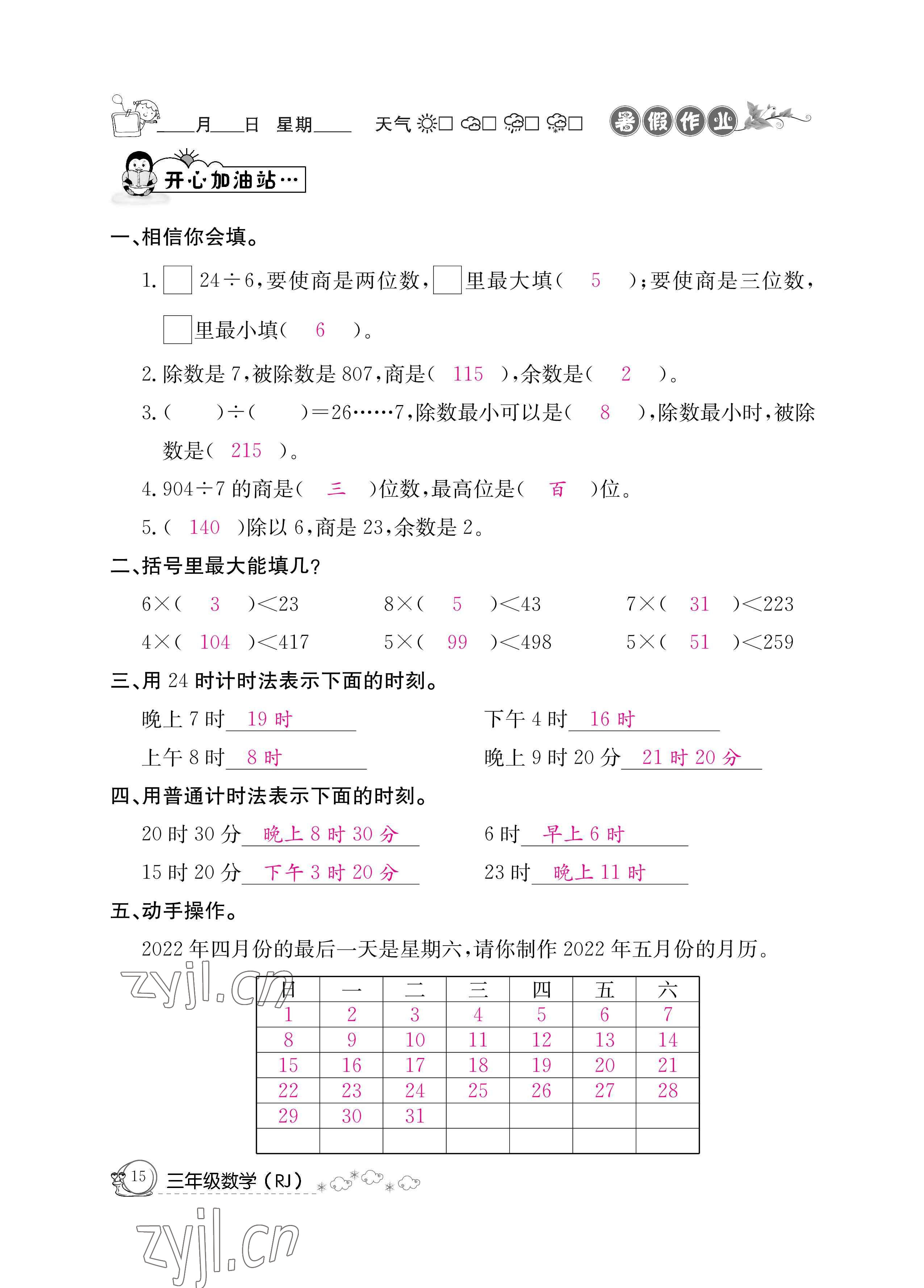 注:目前有些书本章节名称可能整理的还不是很完善,但都是按照顺序排列的,请同学们按照顺序仔细查找。练习册 2022年暑假作业三年级数学人教版新疆专版延边教育出版社 答案主要是用来给同学们做完题方便对答案用的,请勿直接抄袭。