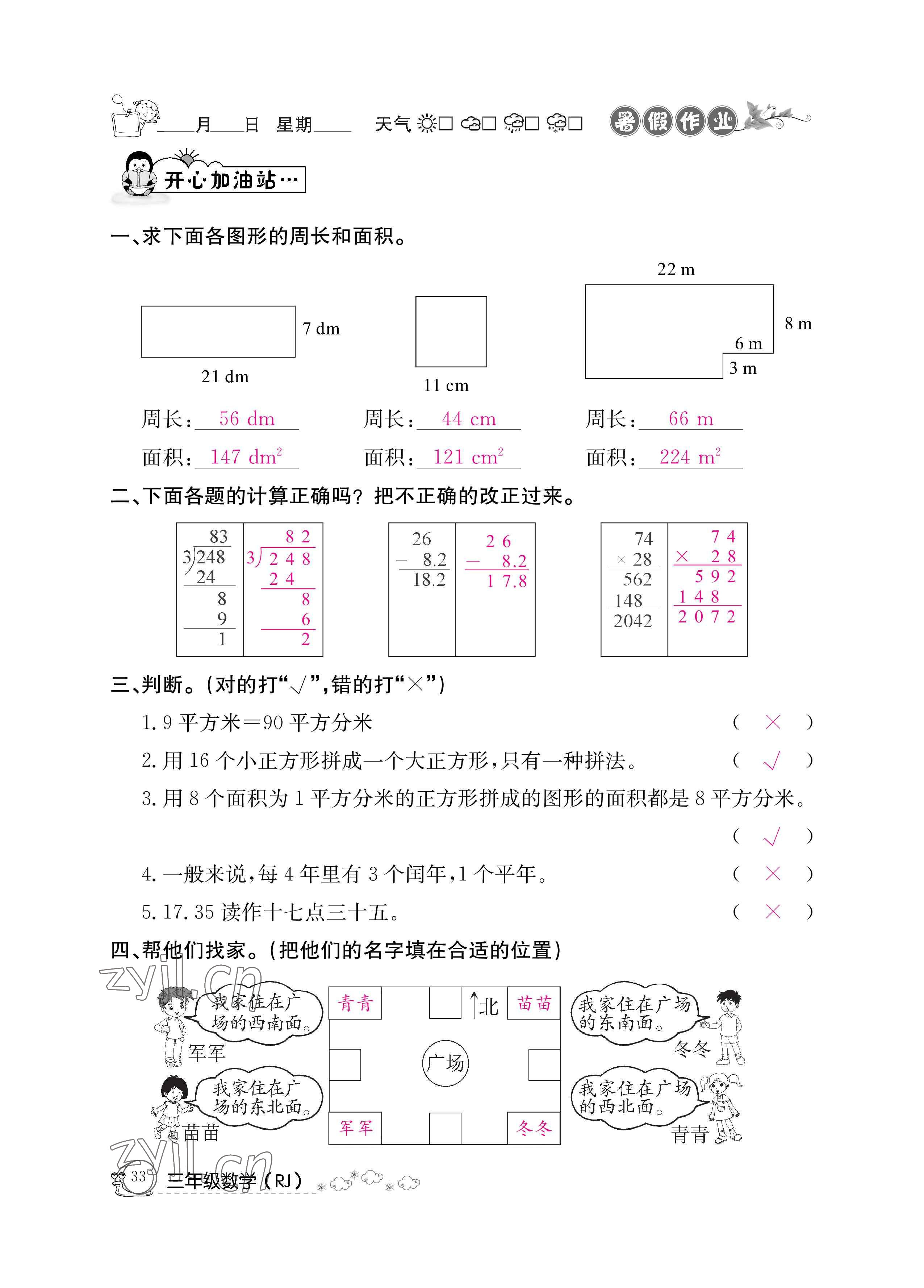 2022年暑假作业三年级数学人教版新疆专版延边教育出版社
