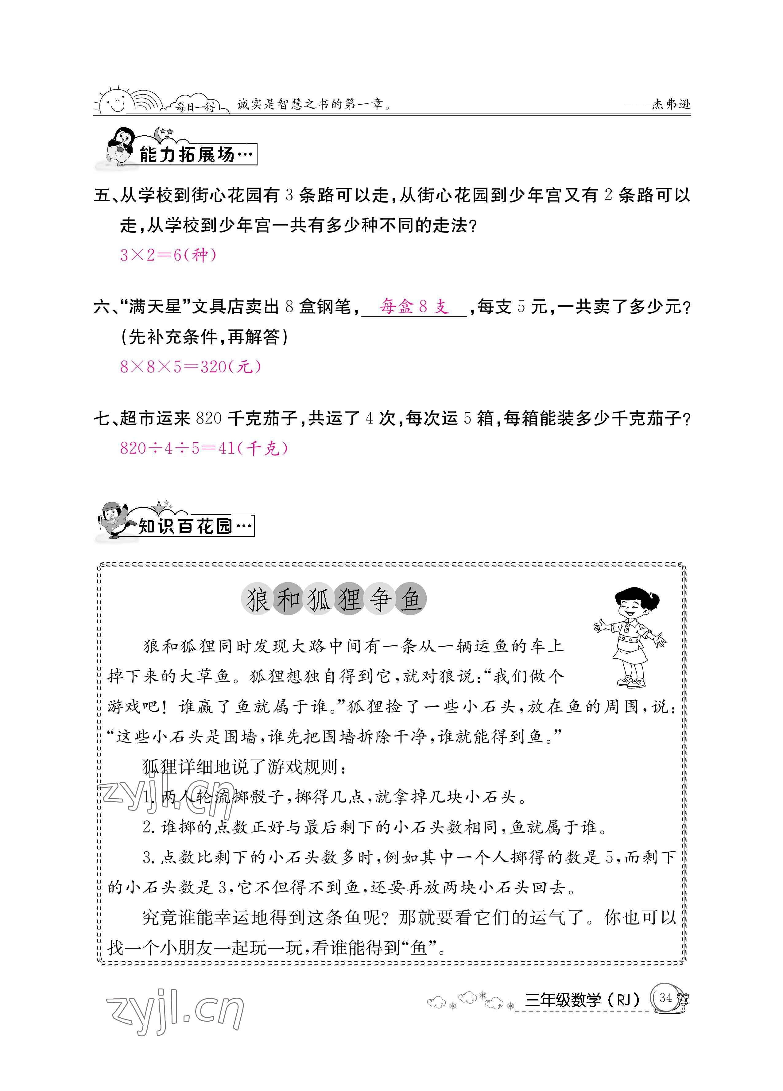 注:目前有些书本章节名称可能整理的还不是很完善,但都是按照顺序排列的,请同学们按照顺序仔细查找。练习册 2022年暑假作业三年级数学人教版新疆专版延边教育出版社 答案主要是用来给同学们做完题方便对答案用的,请勿直接抄袭。