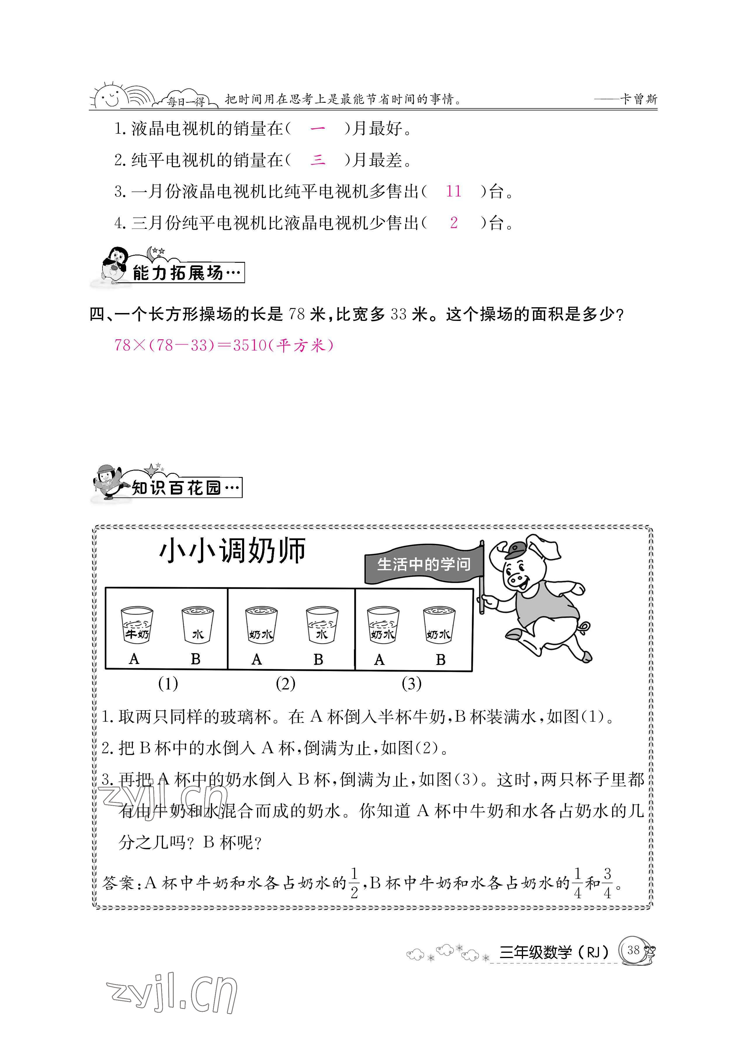 注:目前有些书本章节名称可能整理的还不是很完善,但都是按照顺序排列的,请同学们按照顺序仔细查找。练习册 2022年暑假作业三年级数学人教版新疆专版延边教育出版社 答案主要是用来给同学们做完题方便对答案用的,请勿直接抄袭。