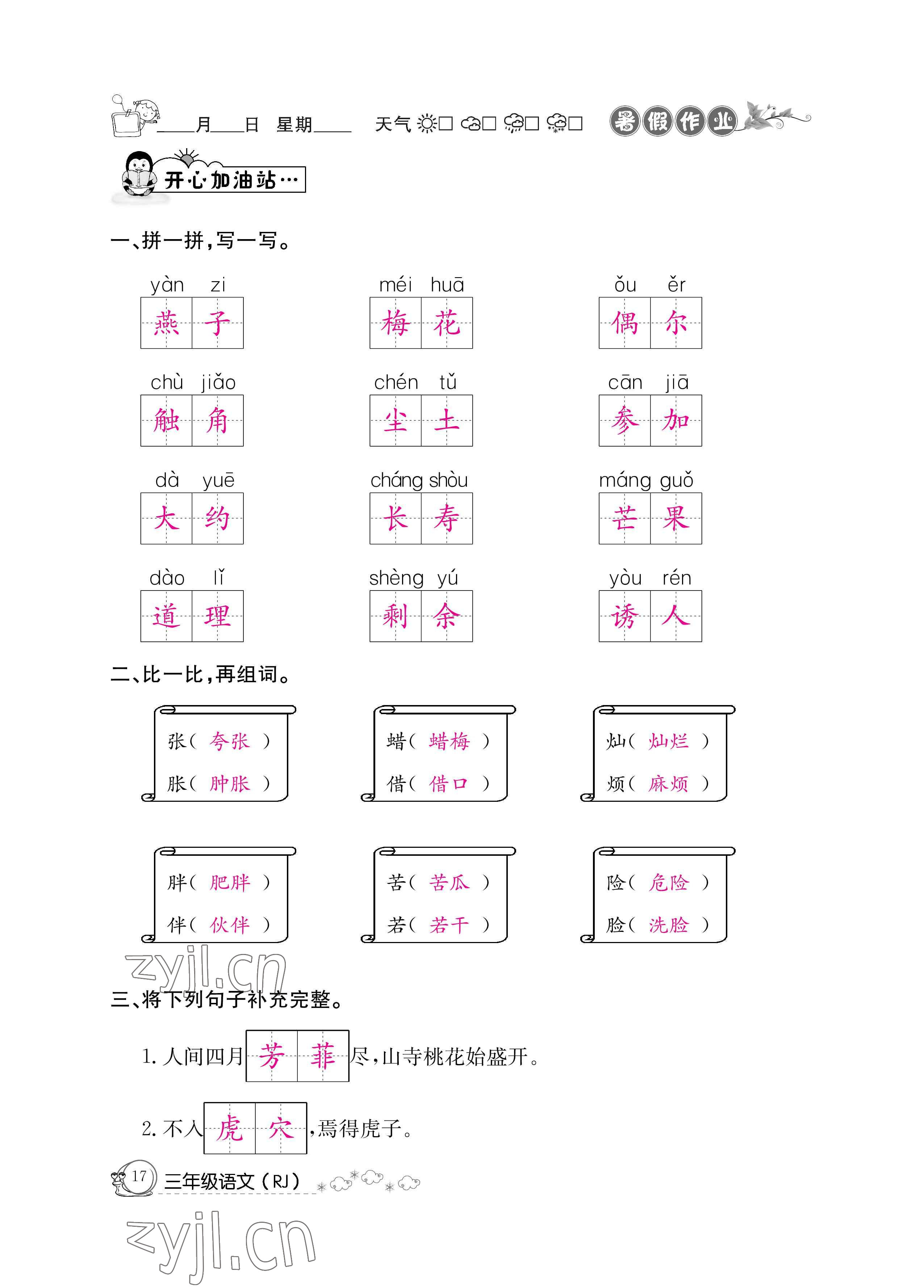 2022年暑假作业三年级语文人教版新疆专版延边教育出版社