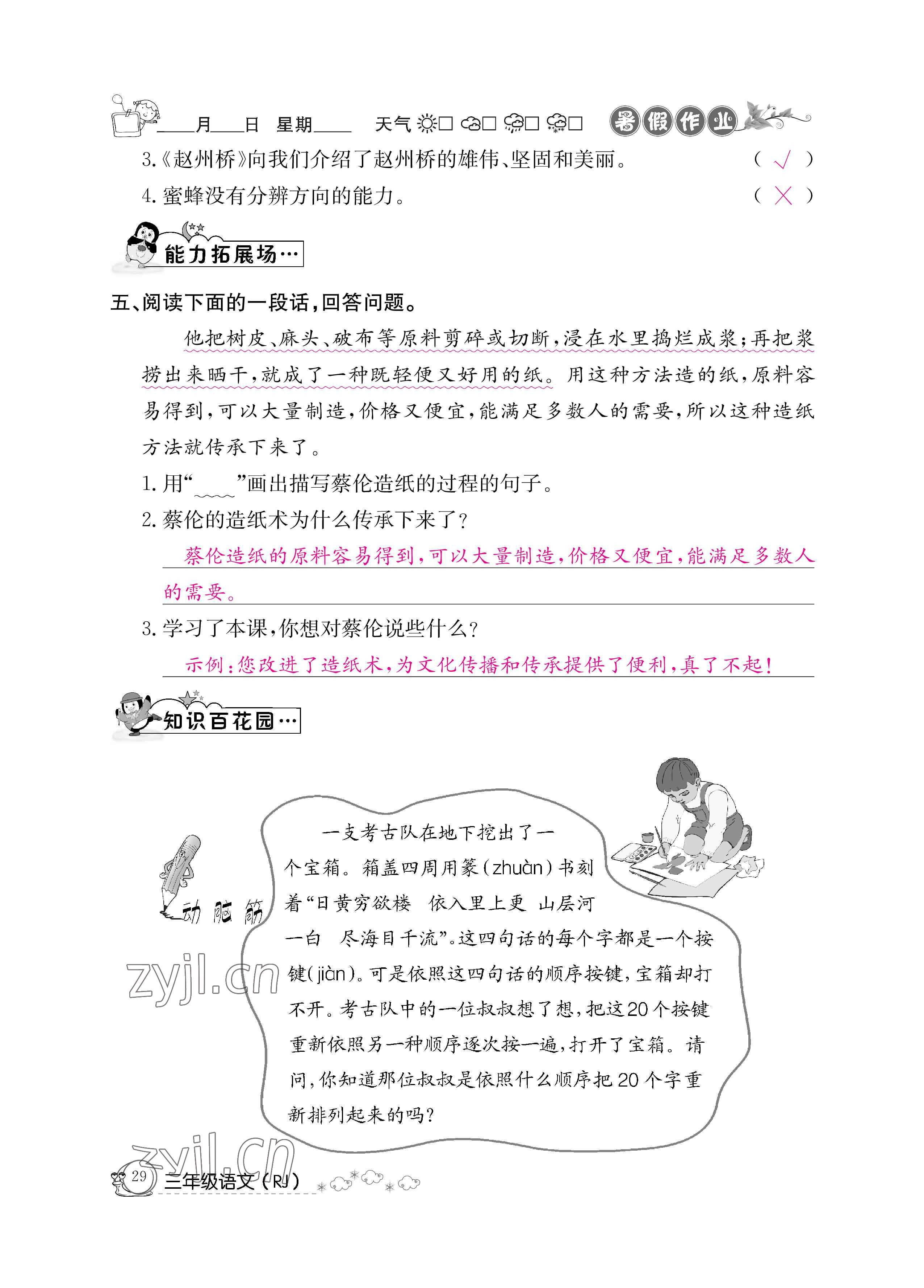 注:目前有些书本章节名称可能整理的还不是很完善,但都是按照顺序排列的,请同学们按照顺序仔细查找。练习册 2022年暑假作业三年级语文人教版新疆专版延边教育出版社 答案主要是用来给同学们做完题方便对答案用的,请勿直接抄袭。