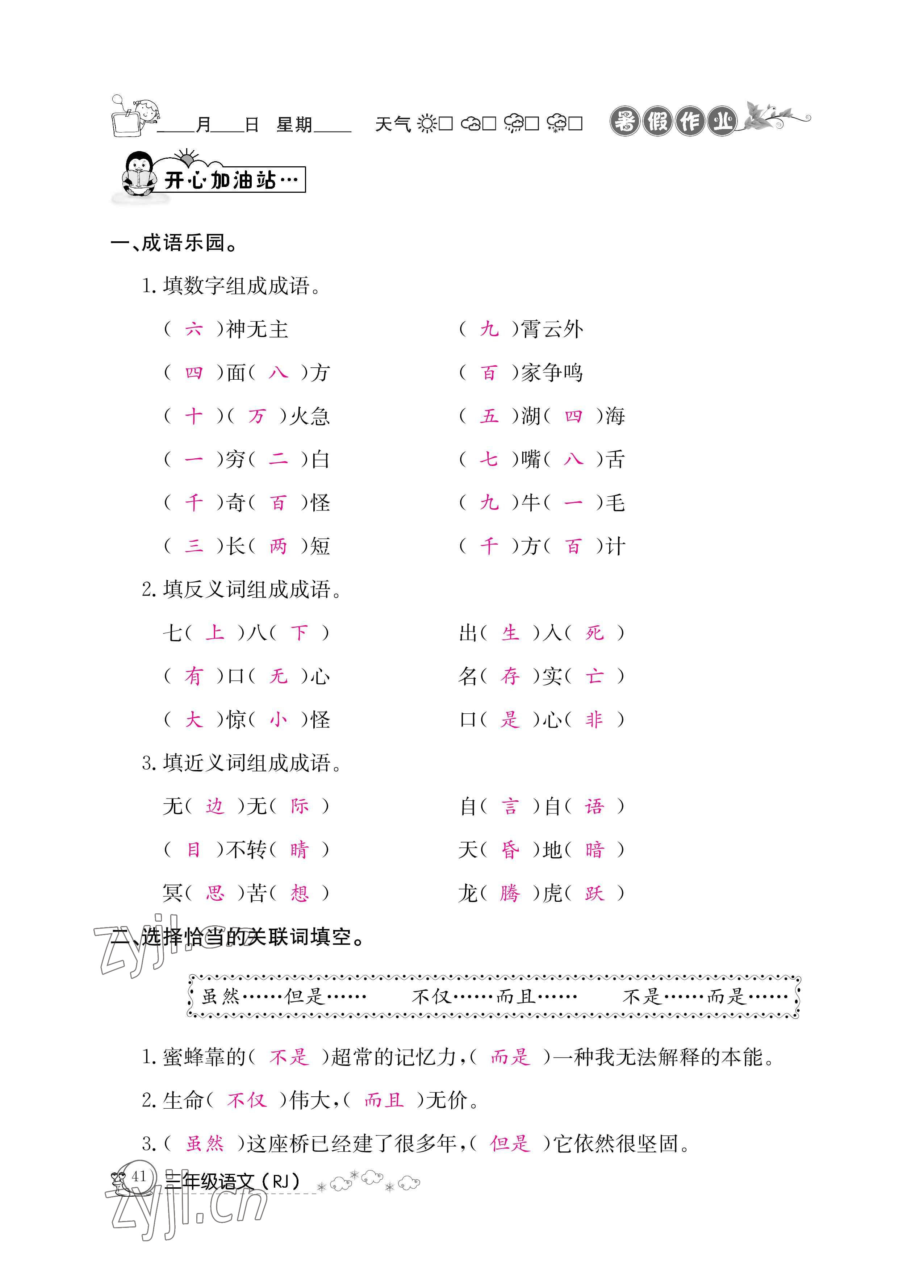 2022年暑假作业三年级语文人教版新疆专版延边教育出版社