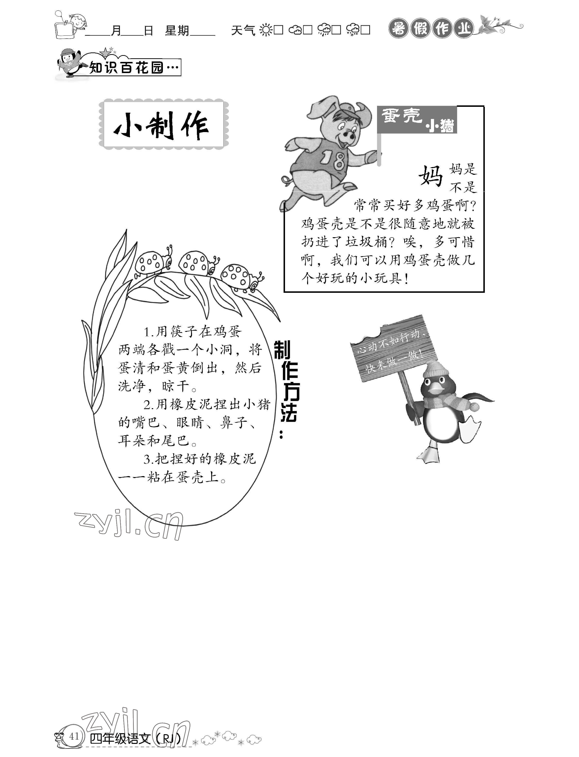 2022年暑假作业四年级语文人教版新疆专版延边教育出版社