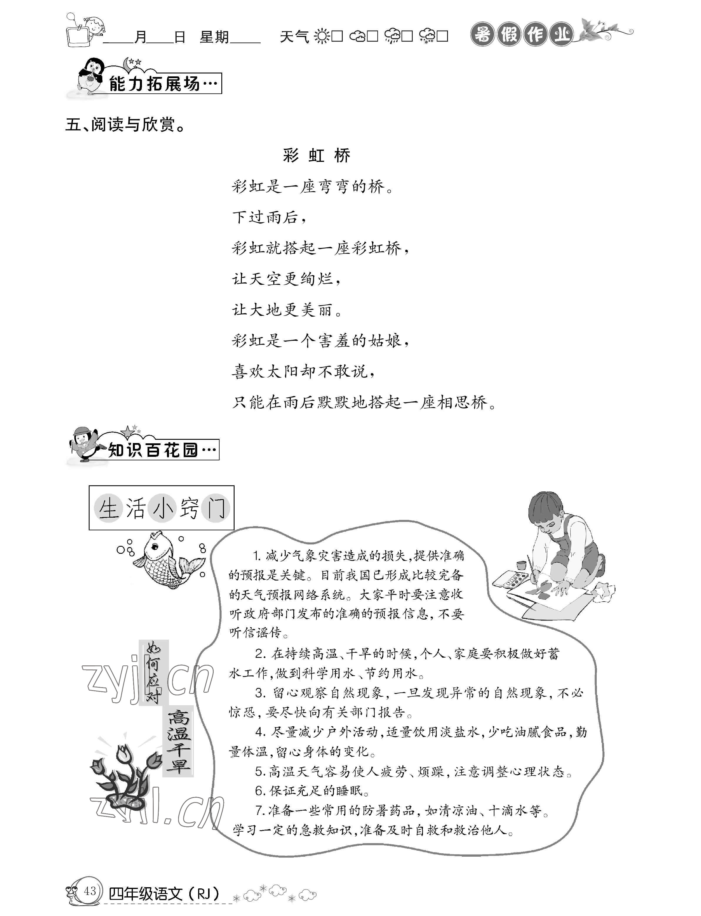 2022年暑假作业四年级语文人教版新疆专版延边教育出版社