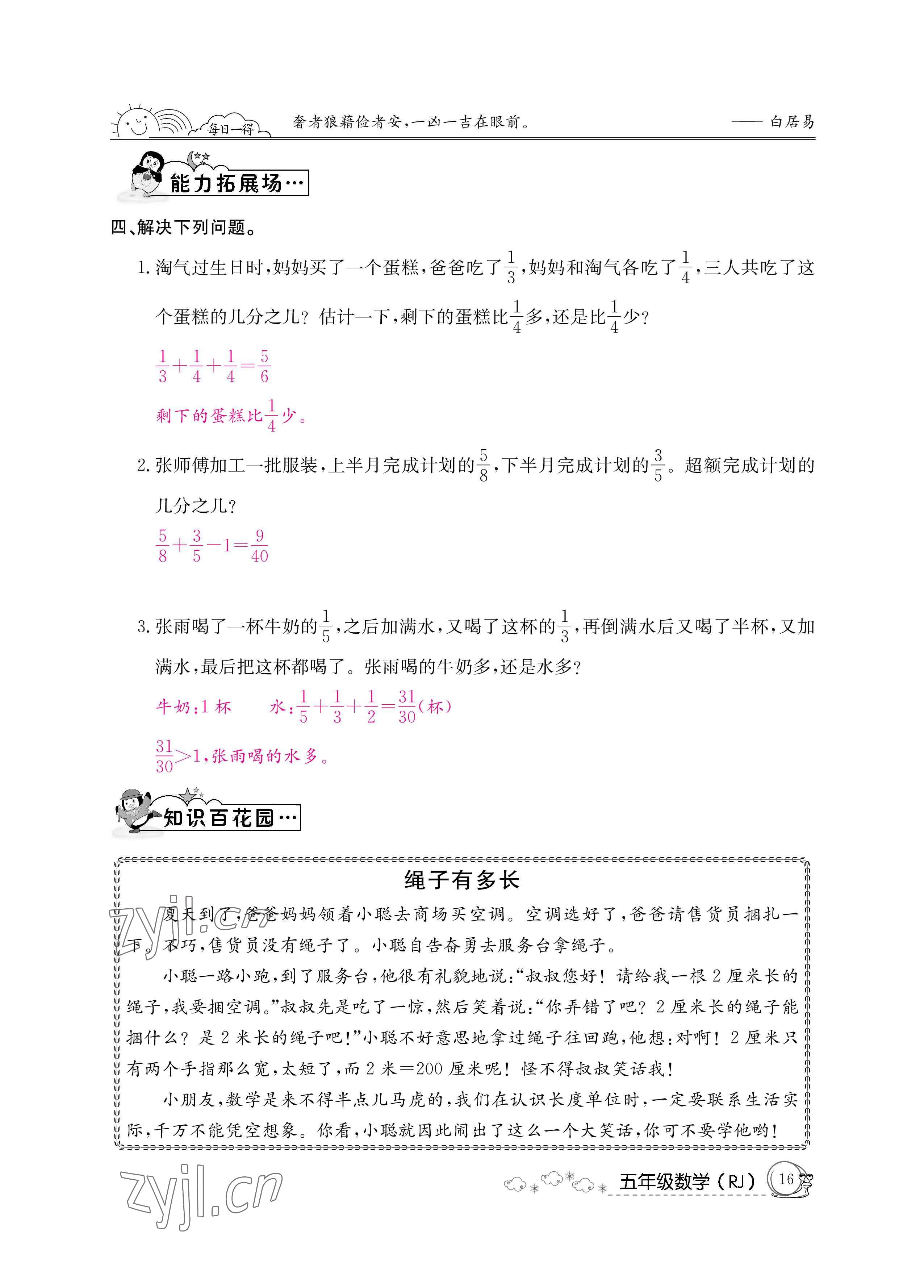 注:目前有些书本章节名称可能整理的还不是很完善,但都是按照顺序排列的,请同学们按照顺序仔细查找。练习册 2022年暑假作业五年级数学新疆专版延边教育出版社 答案主要是用来给同学们做完题方便对答案用的,请勿直接抄袭。