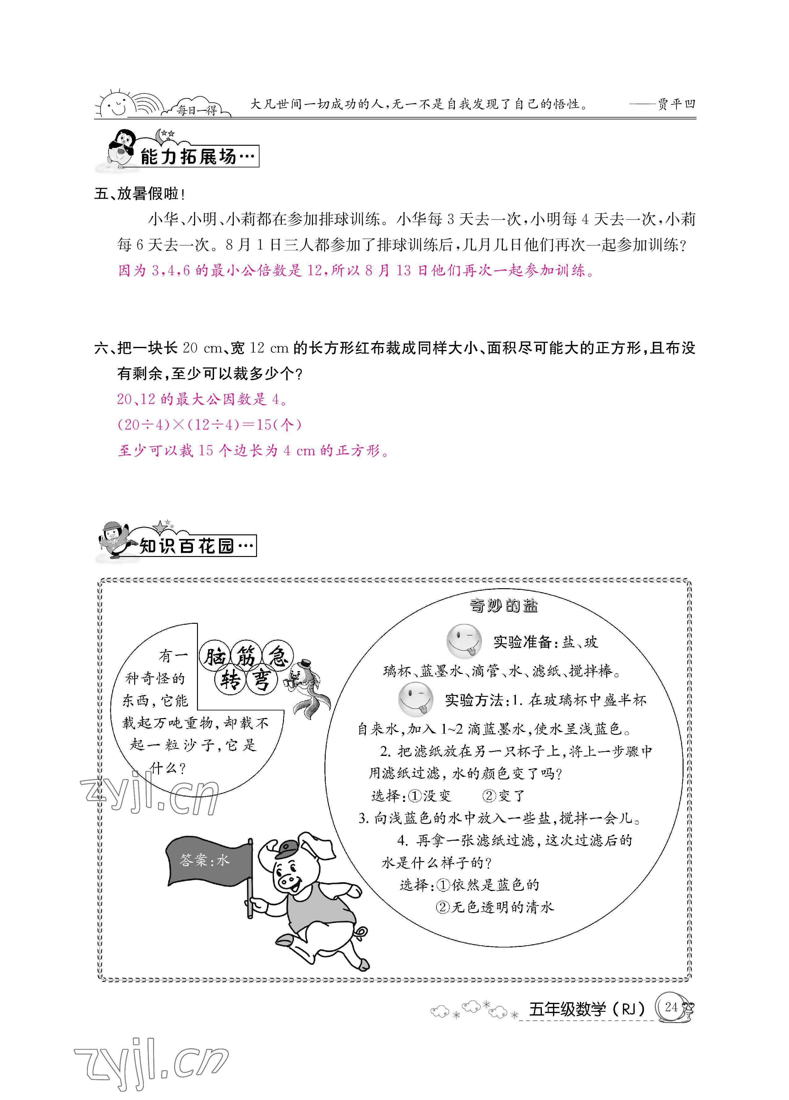 注:目前有些书本章节名称可能整理的还不是很完善,但都是按照顺序排列的,请同学们按照顺序仔细查找。练习册 2022年暑假作业五年级数学新疆专版延边教育出版社 答案主要是用来给同学们做完题方便对答案用的,请勿直接抄袭。