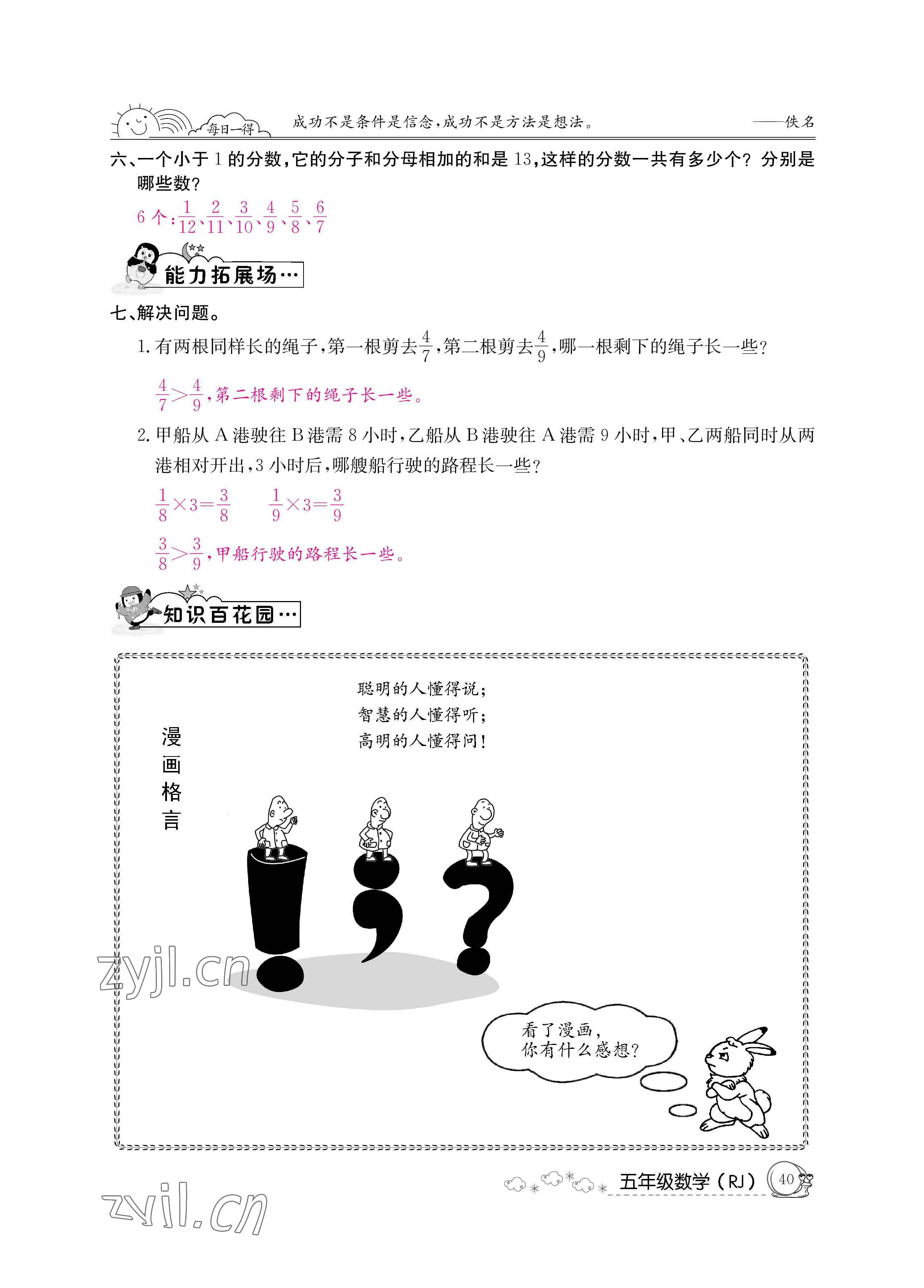 注:目前有些书本章节名称可能整理的还不是很完善,但都是按照顺序排列的,请同学们按照顺序仔细查找。练习册 2022年暑假作业五年级数学新疆专版延边教育出版社 答案主要是用来给同学们做完题方便对答案用的,请勿直接抄袭。