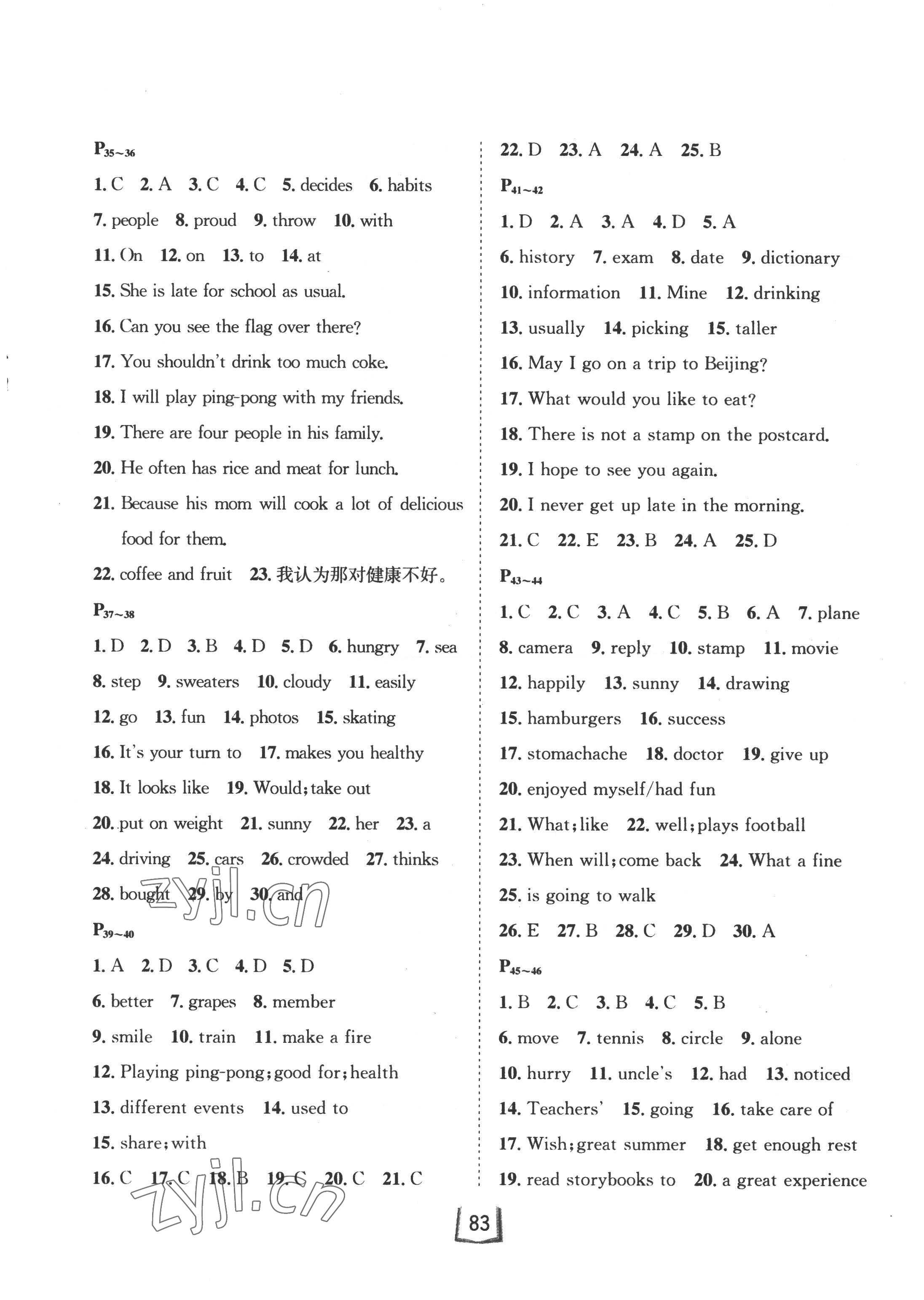 注:目前有些书本章节名称可能整理的还不是很完善,但都是按照顺序排列的,请同学们按照顺序仔细查找。练习册 2022年桂壮红皮书暑假天地七年级英语冀教版河北少年儿童出版社 答案主要是用来给同学们做完题方便对答案用的,请勿直接抄袭。