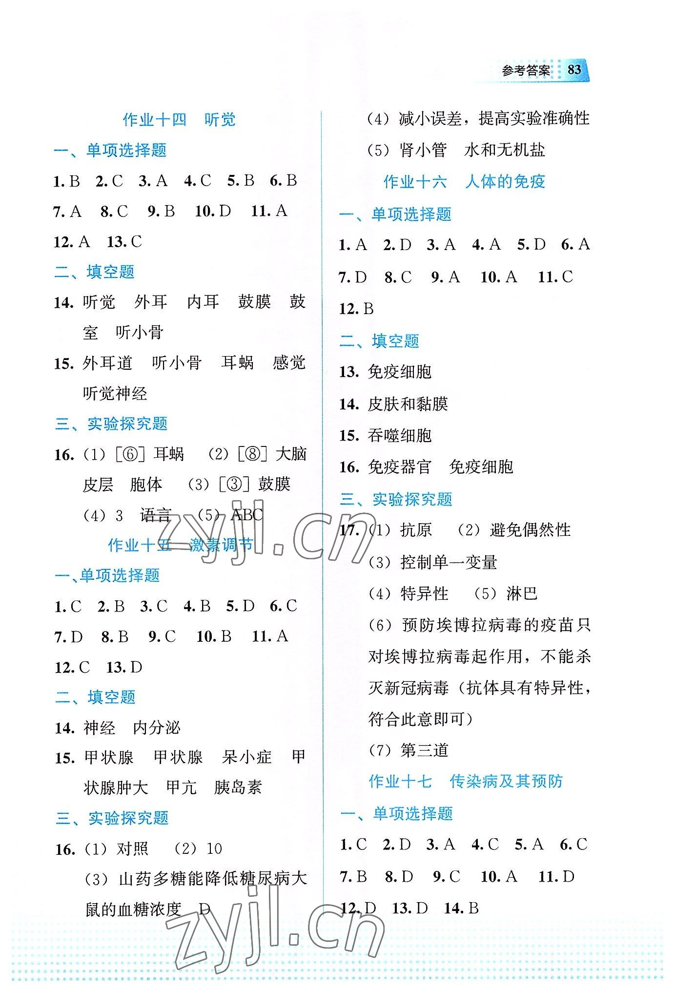 2022年暑假作业教育科学出版社七年级生物广西专版