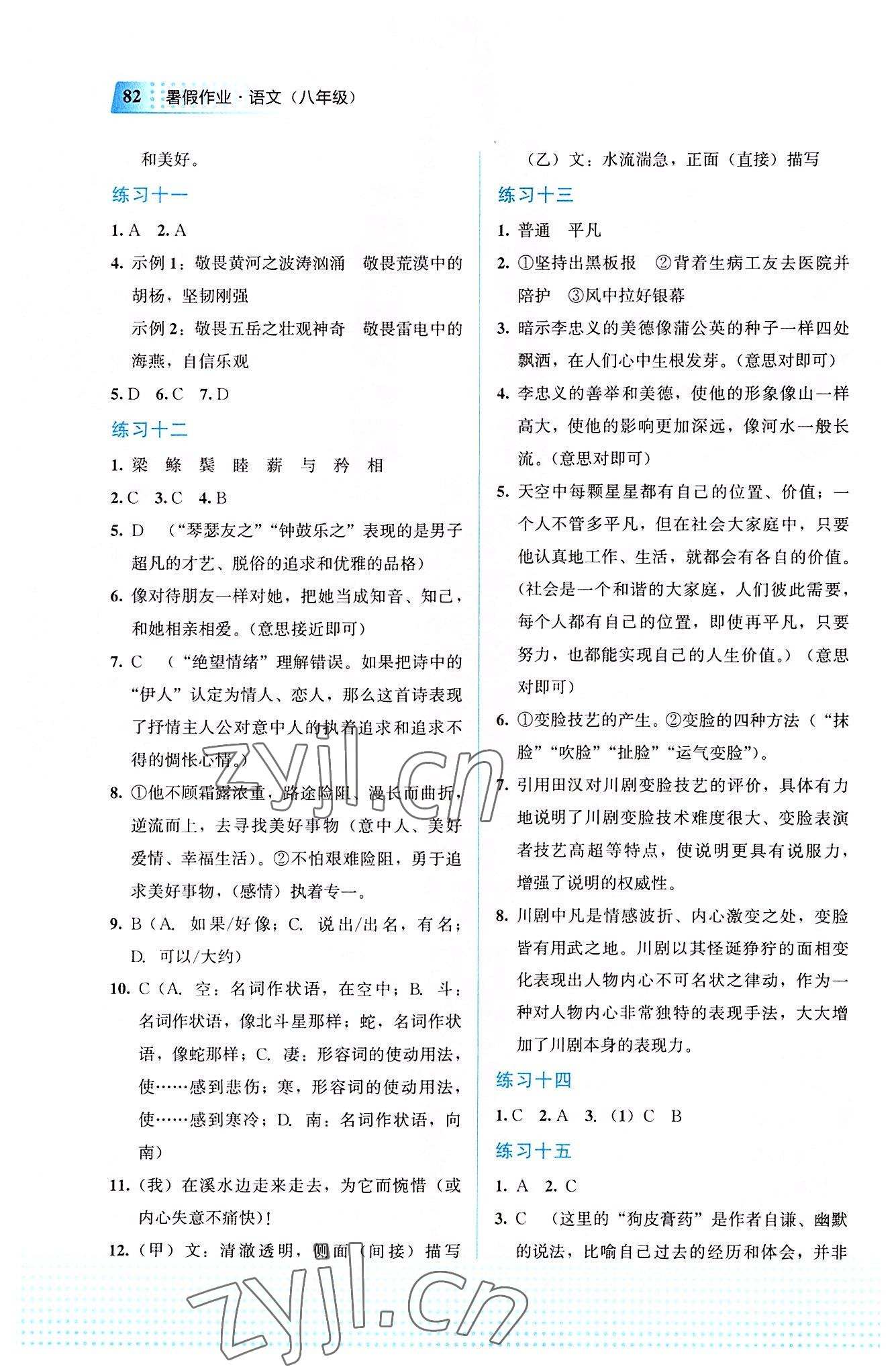 2022年暑假作业教育科学出版社八年级语文广西专版