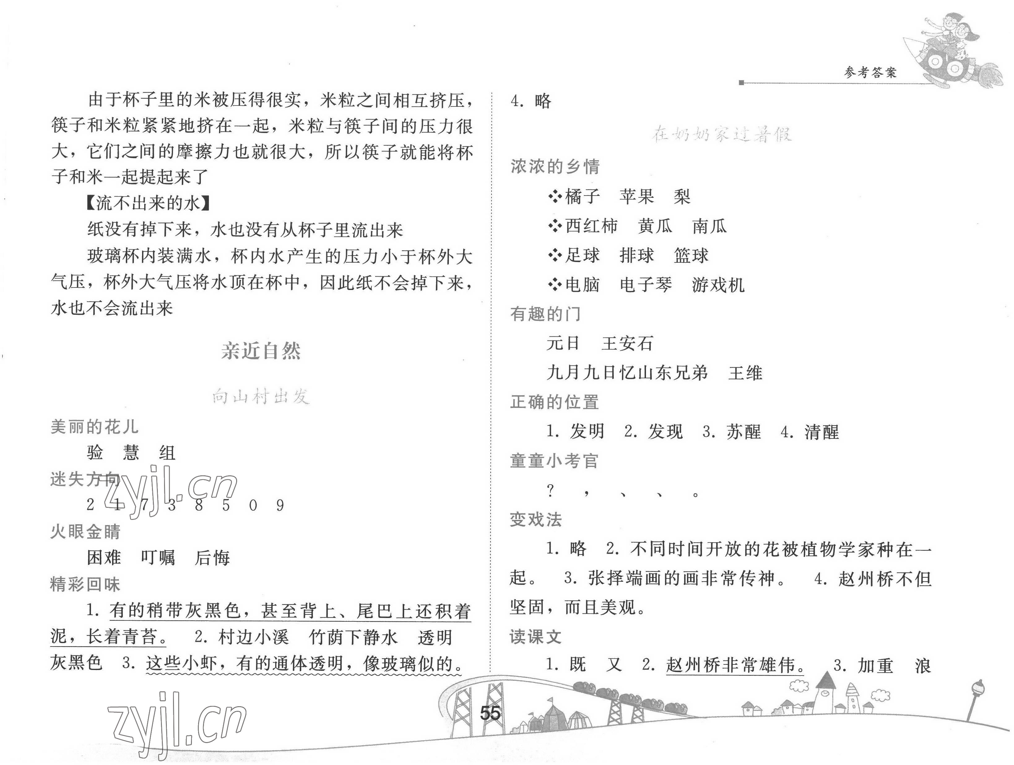 注:目前有些书本章节名称可能整理的还不是很完善,但都是按照顺序排列的,请同学们按照顺序仔细查找。练习册 2022年暑假作业三年级语文人教版人民教育出版社 答案主要是用来给同学们做完题方便对答案用的,请勿直接抄袭。