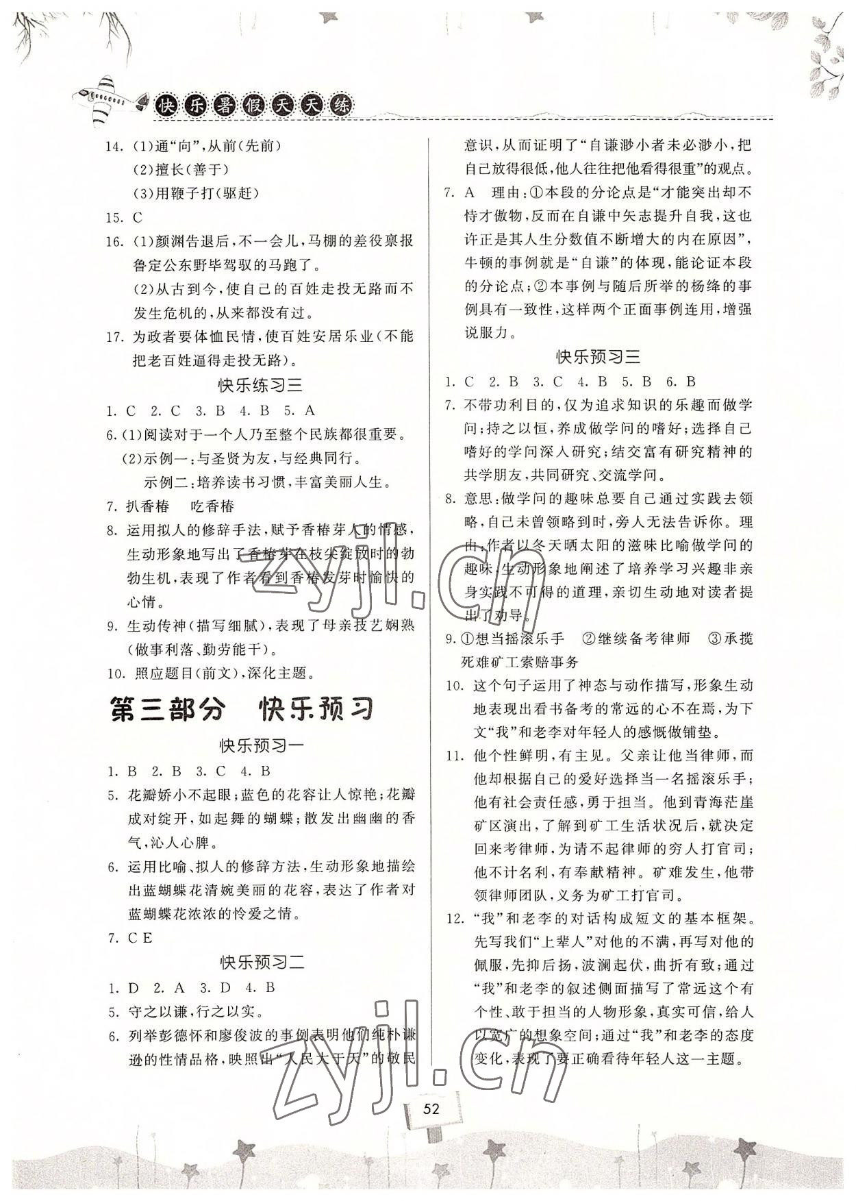 注:目前有些书本章节名称可能整理的还不是很完善,但都是按照顺序排列的,请同学们按照顺序仔细查找。练习册 2022年快乐暑假天天练八升九年级语文 答案主要是用来给同学们做完题方便对答案用的,请勿直接抄袭。