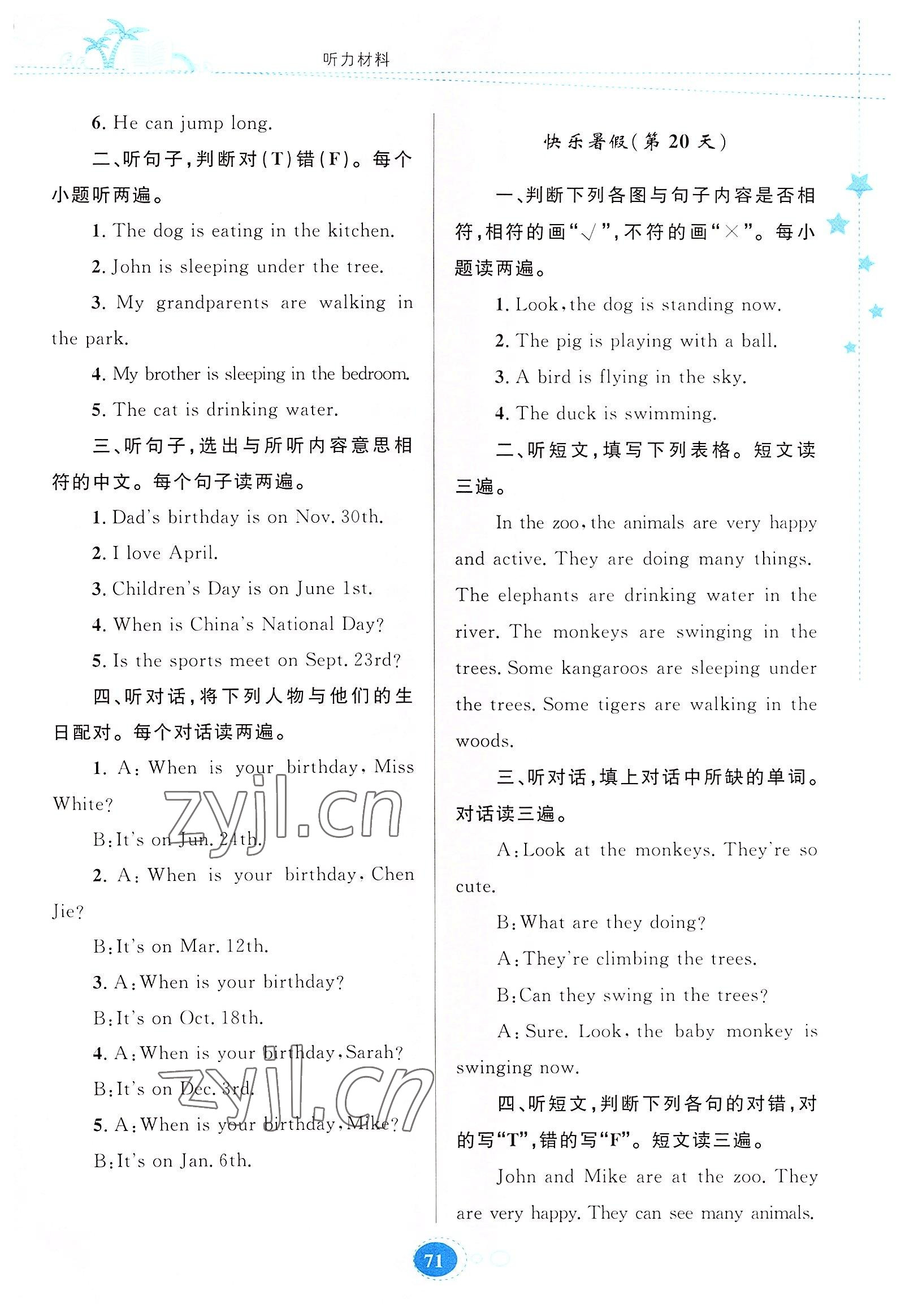 2022年暑假作业五年级英语人教版贵州人民出版社