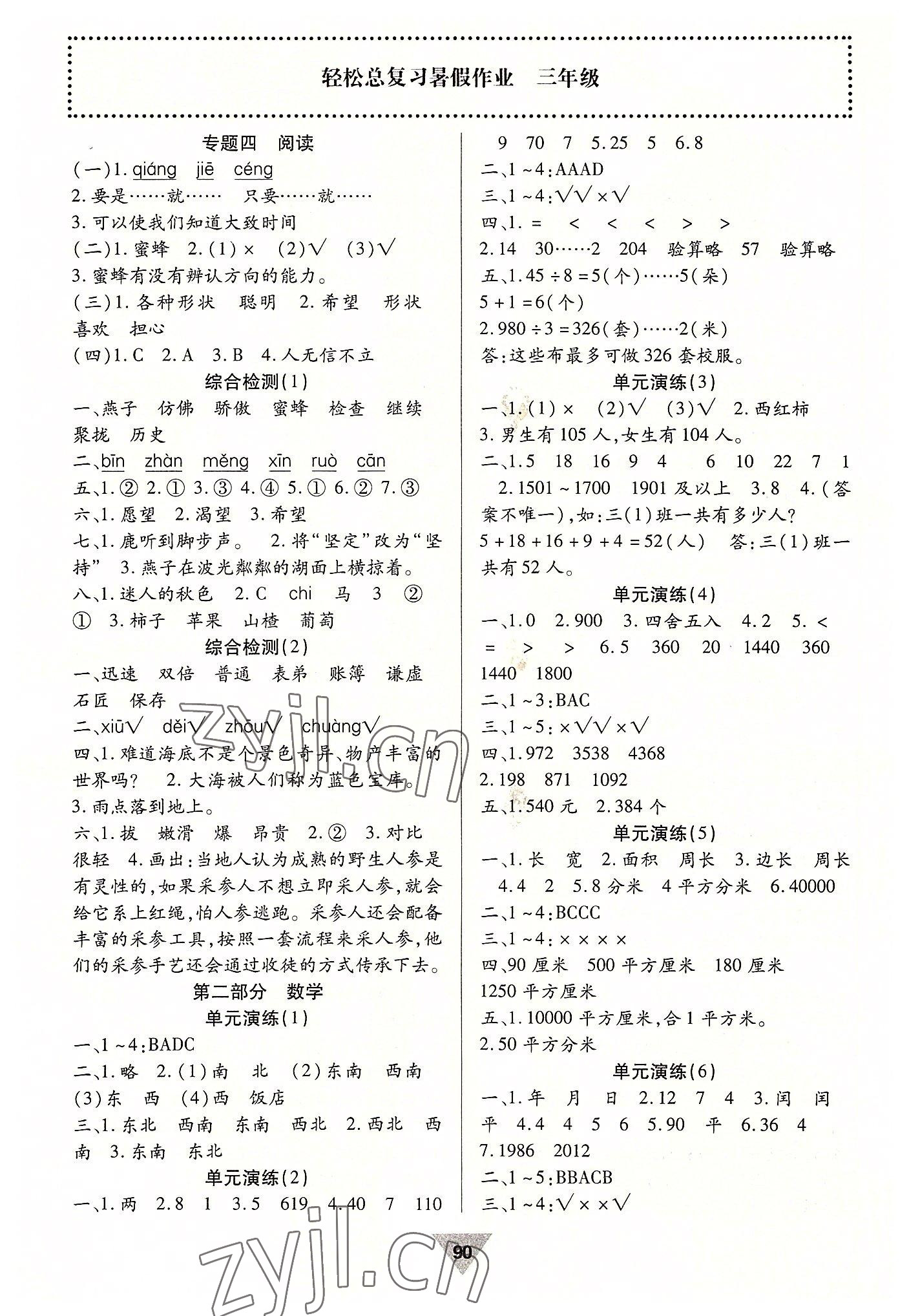 注:目前有些书本章节名称可能整理的还不是很完善,但都是按照顺序排列的,请同学们按照顺序仔细查找。练习册 2022年轻松总复习暑假作业三年级合订本 答案主要是用来给同学们做完题方便对答案用的,请勿直接抄袭。